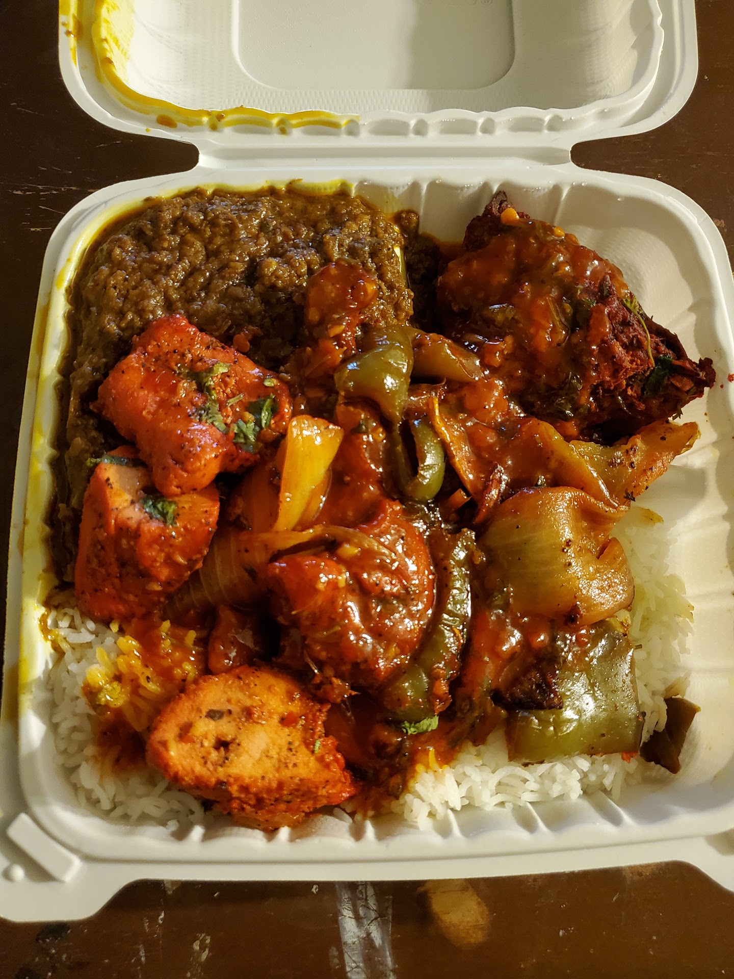Read moreWent outside of my comfort zone and stepped into Taj Fine Indian Cuisine. Virtually empty when I went...plenty to choose from at the hot table! I got the 2 entree with rice plate ($9.99) and the Garlic Naan ($2.99). I ordered the Lamb Curry and the Tandoori Chicken, then decided to also order the Karahi Chicken ($4.99) for tomorrow. Piled HIGH, the smells assailed my nose when I opened the container. The vegetables were crisp, the sauces thick, and the meat cooked to fall-apart perfection. The Curry showed that the Naan was a necessary addition, as the spices were absolutely on point!! The Tandoori Chicken was in large chunks, and tasty and milder than the Curry. The rice was cooked perfectly...all I could do to finish my items, but I still have my Karahi Chicken for lunch. They even threw in a Julab Gamun ball for dessert! If you want an authentic Indian eating experience, eat at Priya's and pay the $$$ price, BUT if you want extremely taste-worthy food at a good $...