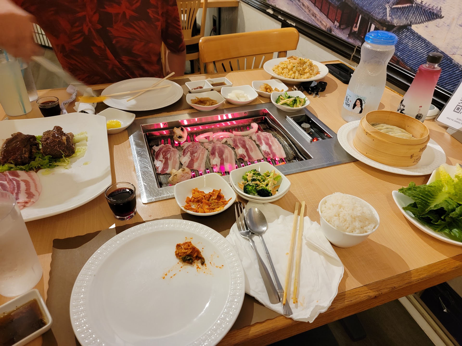 Read moreGreat food. The food is priced well but the drinks are expensive. Worth it to make your way here. They have times where theyre very busy and you have to make a reservations, and they have other times where you can walk in. BBQ or non BBQ menu. You can cook your own food or have it cooked for you. Sake, soju, wine, beer. Try the marinated pork it's delicious. It's served family style. You get to pick 10 sides that come free. You pay for the meat and entree. You could be a vegetarian and come here and just not get the meat. Their menu is able to be found be scanning the QR code I have pictured as well at the restaurant itself. They also have call buttons which is nice. An 18% gratuity is added to the bill if you get the table BBQ. You get to pick an appetizer (choice between scallion pancakes and fried dumplings), an entree (soup, bibimbap, or fried rice), their shrimp fried rice is great., then you pick a drink. The price is based off how many meat dished you want. $80 for 2, $100 for 3, and $150 for 4. It's a lot of meat. 3 meat dished will serve 4 people easily with all the sides. The sauces are delicious. They have kimchi, bubble tea, and you can eat some high quality and healthy food here. Try them out! PS: thanks Samantha for...