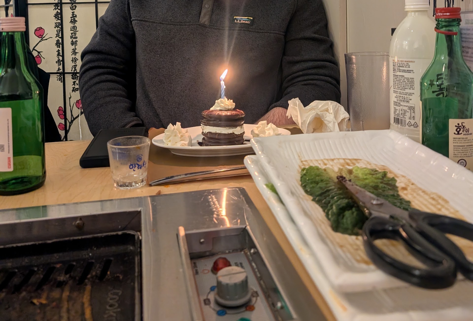 Now the cost. We obviously love spoiling and treating for friends bdays, but the prices make that a little rough here. The four receipts (among the 7 of us, there are couples) each were around $120. That of course includes bottles of soju, the app, the sets, and some individual non-alcoholic drinks. I will say though, for ~$300 for the sets, I would have loved to see more meat and more banchan and rice.