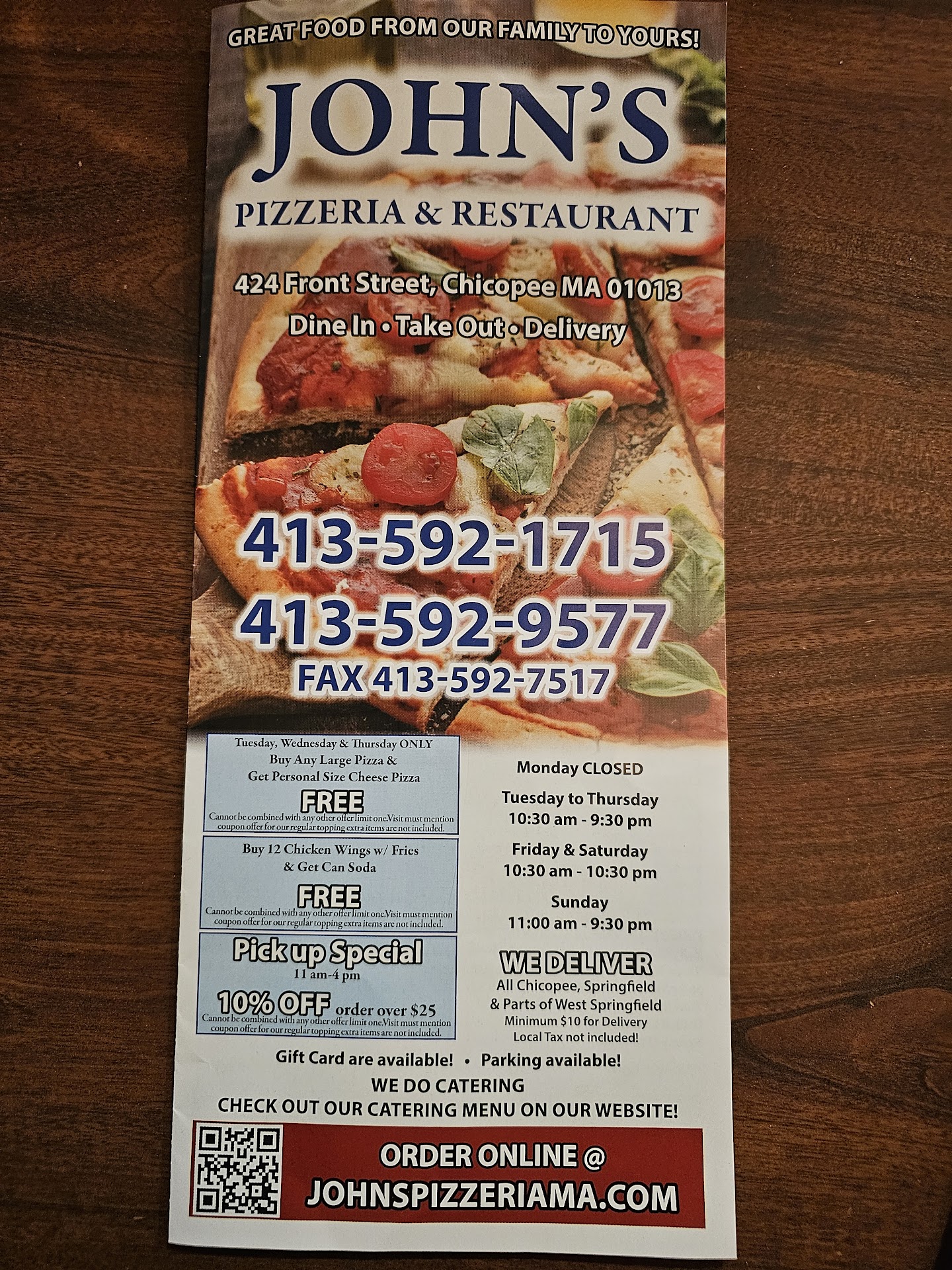 Read moreDelivery driver was prompt,friendly and efficient. Food always comes on time or earlier but i am close by lol the pizza is always yummy. Only place i always eat the crust ends too! Meatlovers is our fave. Calzone bread is scrumptious MUST be made in house tastes like soft homemade bread with slightly crunchy outside soooo good. Marinara is the bomb! Meatballs are HEAVEN! We get cheeseburger grinder often. like how it has that grilled flavor.Im sure it's fake lol but we like it. Im told they weigh the calamari an each portion is the same but its a bummer to pay $16 for something that visually only looks like $9- $12 cuz it looks puny compared to other visits. They were so nice talking about it to me an i get it but looking back over pics you can totally tell . so while its delish i rarely order it now cuz im irritated an who wants to be irritated while enjoying yummy food! LOL lots of other choices! Soups are delicious also. I always feel our meals are packed with care too. Never sloppy or messy. Our...