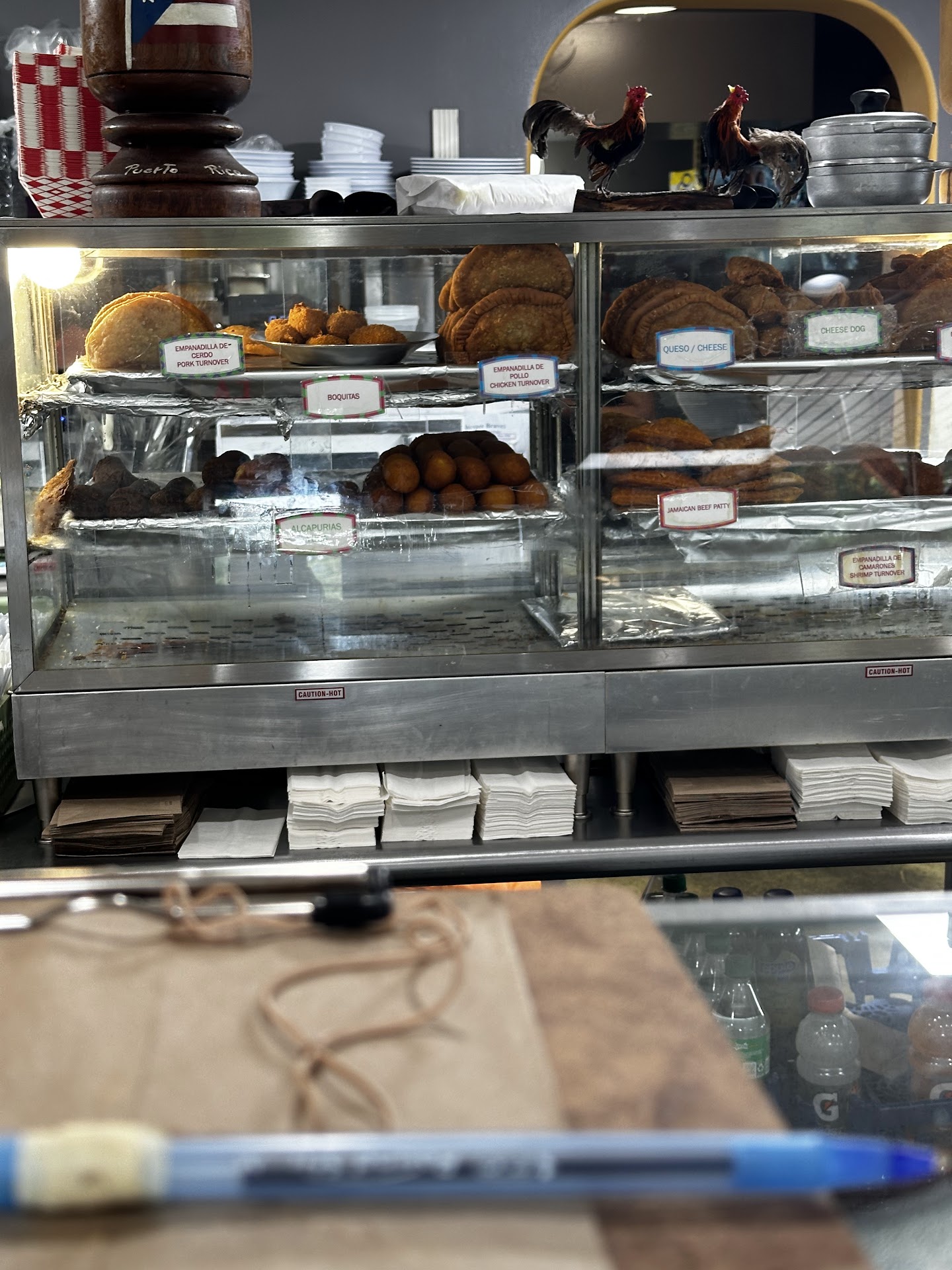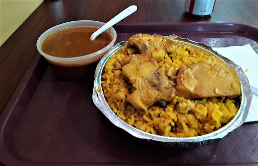 I stop here when I get out of work at 6 a.m. and it's never busy at that time I pick up a half of Vienna bread breakfast sandwich Steak,Egg and Cheese they whip it up pretty quick and I'm out the place inside is small,the seats are the mostly booths without padded seating and there are about four card playing size tables along the front of the entrance wall when you enter usually when I come in to order they're usually playing music at a low volume mostly Spanish like a salsa or bachata.My only complaint is when you order a dinner to go they use aluminum tin pans with a plastic see through top,the complaint is if I don't eat the food immediately as soon as I get homelike an hour or more later I can taste the aluminum when I'm eating and getting to the bottom of the plate no matter it be rice or meat my taste buds pick it out.If only they could use Styrofoam to go plates.Its gotta be price related bulk issue but hey just a little heads up for people that have sensitive taste buds so whenever I order a dinner plate from them I rush home dump the food out into a regular plate then I don't have to worry about rushing to eat it.But the owner is the cook also,a nice gentleman his wife usually is up front working the cash register taking orders...