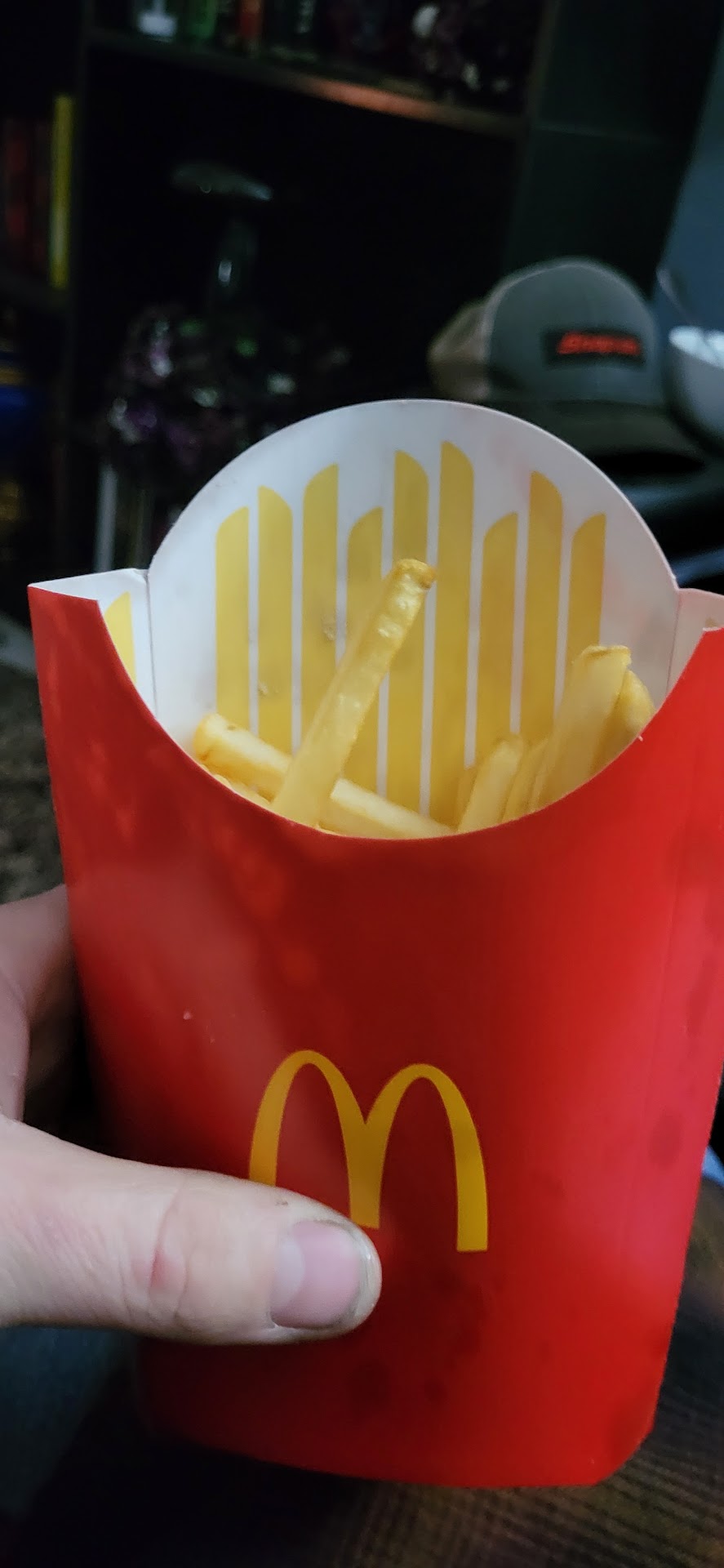 While on the way out, a mother with her children was complaining about 'cold fries' but we weren't sure what she meant until we got our food (which we had to retrieve from another customer. She just handed it to them without checking their number / receipt) and the fries were oily but also lukewarm and barely cooked at all. :s Literally awful. I have never - in my life - not finished McDonalds fries but neither myself, my sister, nor my wife could finish these. Not sure if they crowded the fryer or forgot to fry them fully / double but they were just awful.