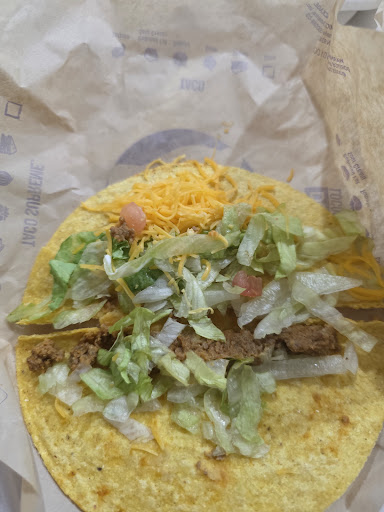 Read moreI ordered a Doritos locos combo. Which is 3 Doritos Loco SUPREME. I get my order get so the way back to the hotel, took a bite... No sour cream or tomatoes. I called the restaurant back and informed her that there was no tomatoes or sour cream. She argued with me, telling me I didn't ask for the tomatoes or sour cream l. I told her I don't have to ask for tomatoes and sour cream it's a supreme locals combo. I told her I worked at Taco Bell for 4 years. She said she's worked there for 8. There is more back and forth but eventually she just told me to come down and get new tacos. I'm thinking cool, so I go down there to get my tacos, bring it back to the hotel, open them up, take a bite......... Loaded with lettuce three or four tomatoes over abundance of sour cream and barely any meat and by barely it barely covered the bottom of the shell. Super petty very immature and disappointing. One customer in a restaurant and still couldn't get my order right and then going to argue about it. I'm glad I don't live in the city and I'm just passing through. I feel sorry for the people who live here and have to do with that lady. Either way it was a lesson learned. Update: I open my last taco and this is what I saw. Picture...