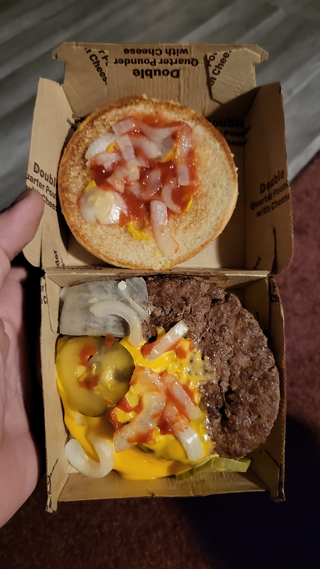 After that, they dropped off the food, I checked it and there was cheese both on the top AND bottom of the burger. I had to go into the store and wait for someone to even acknowledge me even though there was no line. Then I waited about another 6 minutes for a burger with no cheese.