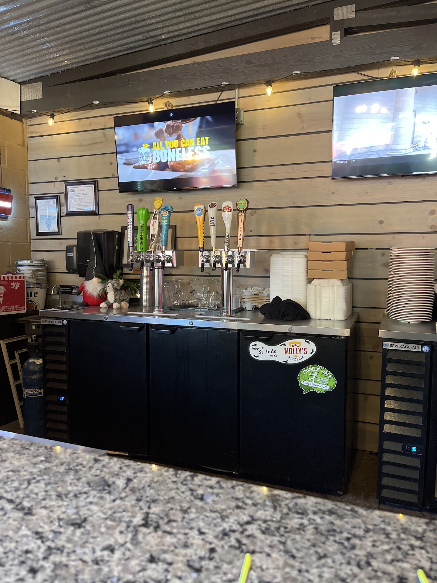 We've been going weekly for this last couple of months. We're always looking for a great pizza place! We thought we found it? Now, I don't know. We're creatures of habit on what we order. Pitcher of Pepsi, pickle sticks and a large bacon pizza, thin crust. First time we forgot to say pitcher, but one was brought out when we asked. For some reason, if you don't tell your waitress ice in the glasses, the pitcher is filled with ice, pop over, no ice in your glass. Confusing. Our pizza crust was 10 seconds away from burnt. Next time we had another couple with us and our pizzas crust was perfect. So the first was a fluke, right? Wrong. Next time, crust was 10 seconds from burnt. I said something and was told pizza went through on a conveyor, didn't know if there was anything to do. Ppphhhlll...Went the next week and reminded our waitress that we don't want an overdone crust. The next 2 times we went, crust perfection!! I also asked for ice in glasses, not in pitcher. Why have melting ice in a whole pitcher of Pepsi? We made a quick trip to Peoria yesterday 12/21, and decided to eat at Molly's. Different waitress. Again said we don't want an overdone crust. This time, she said she'd go ask the owner. Owner suggested running the crust through, putting toppings on, running through again and from there I was lost. We were sitting in the dark, our part of the restaurant had no lights on, so when the pizza was brought out and we were asked how it looked, I was trying to see the crust. I said it looked good. From what I could see. What I hadn't noticed, was that our cheese wasn't melty and gooey. Not really even close to melting. Have you ever eaten a pizza where the cheese is still a solid form on the pizza? Yeah, it's not very tasty. When the waitress asked how it was, my husband said, good. Why, I have no clue when he was sitting beside me complaining about the pizza. We've made a special trip to Chillicothe just for Molly's pizza. The inconsistencies are killing it though. I left last night hungry. First time I've ever left a pizza joint hungry. One last comment. There's disabled parking on the side,yet the door is locked. Why? Our daughter is disabled and we'd very much appreciate parking in the designated area specifically for her and others that are also disabled. I'm sure they'd appreciate easy access too! Disabled does not...