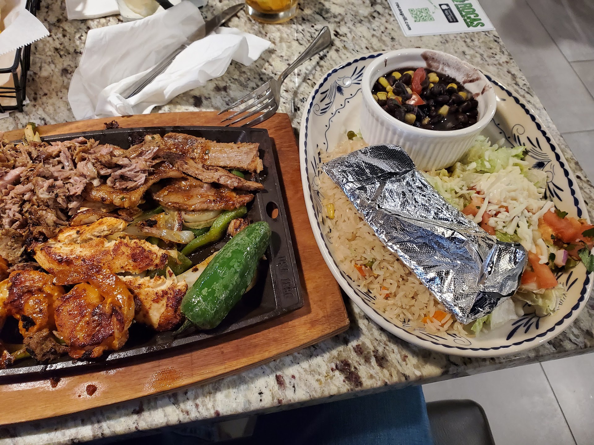 Read moreThis place is fantastic, it is much nicer than your typical Mexican restaurant. It has a very upscale type of feel without the upscale price. I have visited several times since they have opened, trying different dishes each time without disappointment. I don't remember the exact dish name but it was the first dish under the combination/mixed section. This was probably the best food I've ever had at a Mexican restaurant. It came with pork, chicken, steak and bacon wrapped shrimp on a bed of peppers and onions. The second plate had cilantro rice, corn/black beans and the typical lettuce/sour cream/guacamole with two flour tortillas. Everything about this meal, from the service to the food, was outstanding. If you want great atmosphere, fast friendly service and delicious Mexican dishes, this...