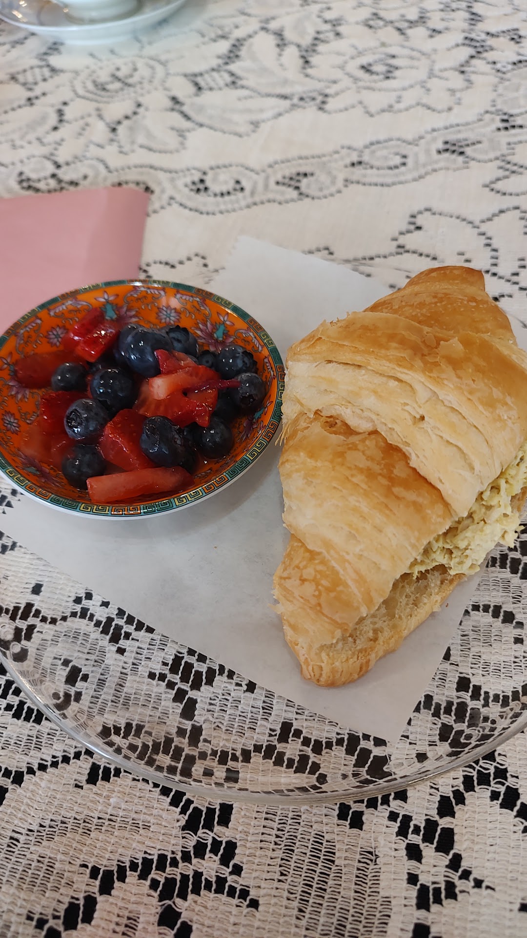Read moreSo we went here for my birthday "tea" and it went exactly how that sounds. If you're not familiar with a "tea time", everything is small - from the shop, the bathroom, the food and the teas you drink. Best word to describe it overall? Quaint. Don't get me wrong, this place apparently stays in business because it's just that and does a tremendous job of doing specialty parties, high teas and special occasions (Tea for Two also caters I think). We had the chicken salad croissant with fresh fruit and the pimento cheese, bacon and tomato sandwich with pickled beets. All of it delicious. Just small portions. There are no menus, which is a negative for me. The waitress just reads off the menu items from her book and you pick. We had to ask her to read them twice. Again, this is truly a brunch spot (after you've had a light breakfast earlier in the morning or for an afternoon tea when you've had a light lunch.) But? Their desserts cabinet was amazing! They had everything from strawberry pies to peanut butter chocolate brownies to cream filled cookies in that thing! They had more desserts than lunch menu items! And they were goooood. Again, nothing is labeled in the dessert case and you have to ask the waitress to tell you what's what, and AGAIN, do it twice. This place really needs a paper menu for lunch sandwiches and drinks and especially labels in the dessert case. This is why I gave the service a three. We spent $45 for three sandwiches with three sides, three teas and two large desserts, not including tip. Even if you stop for just a dessert, you cannot go wrong here! A side note... There is only street parking, which is free, but keep...