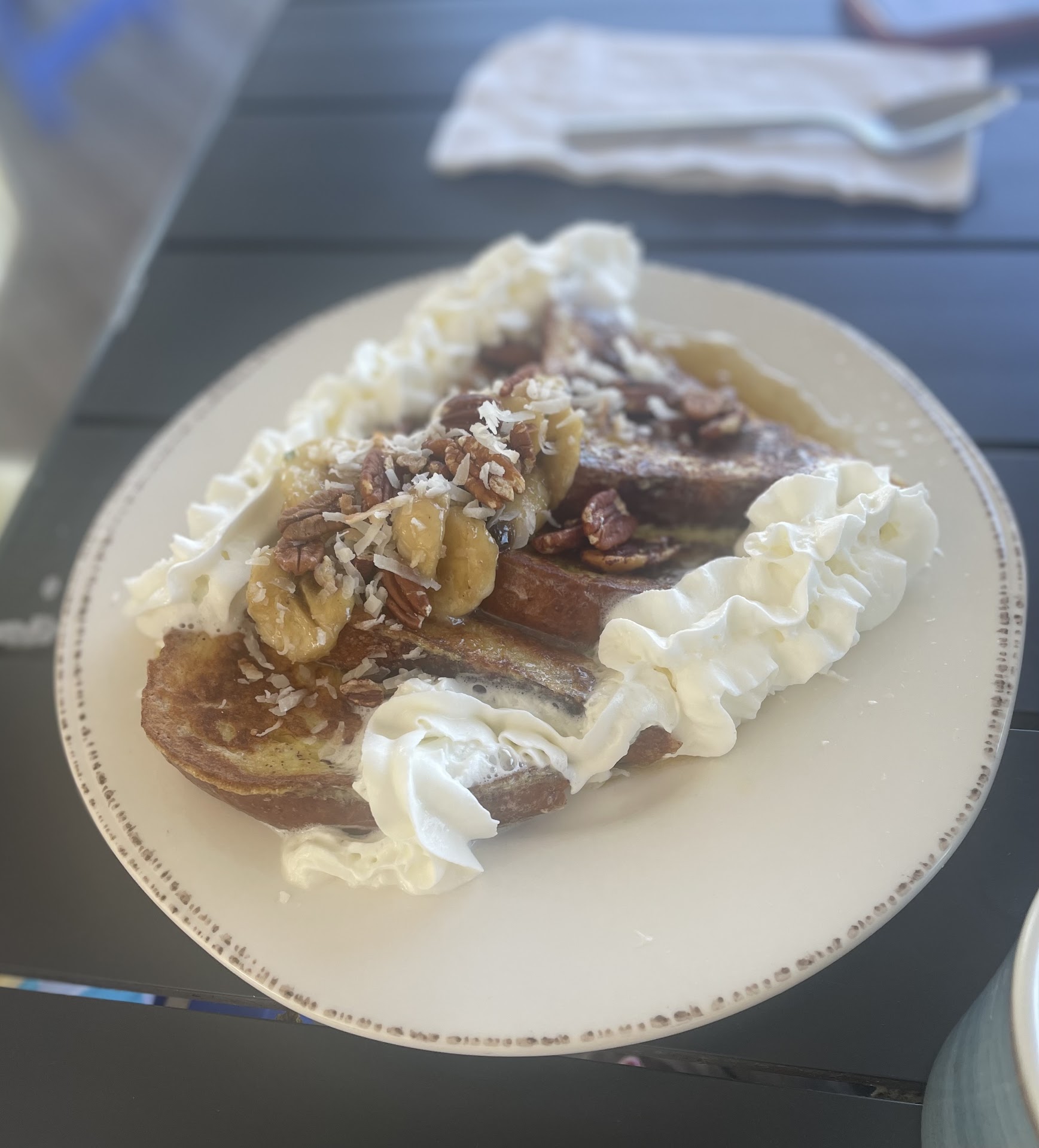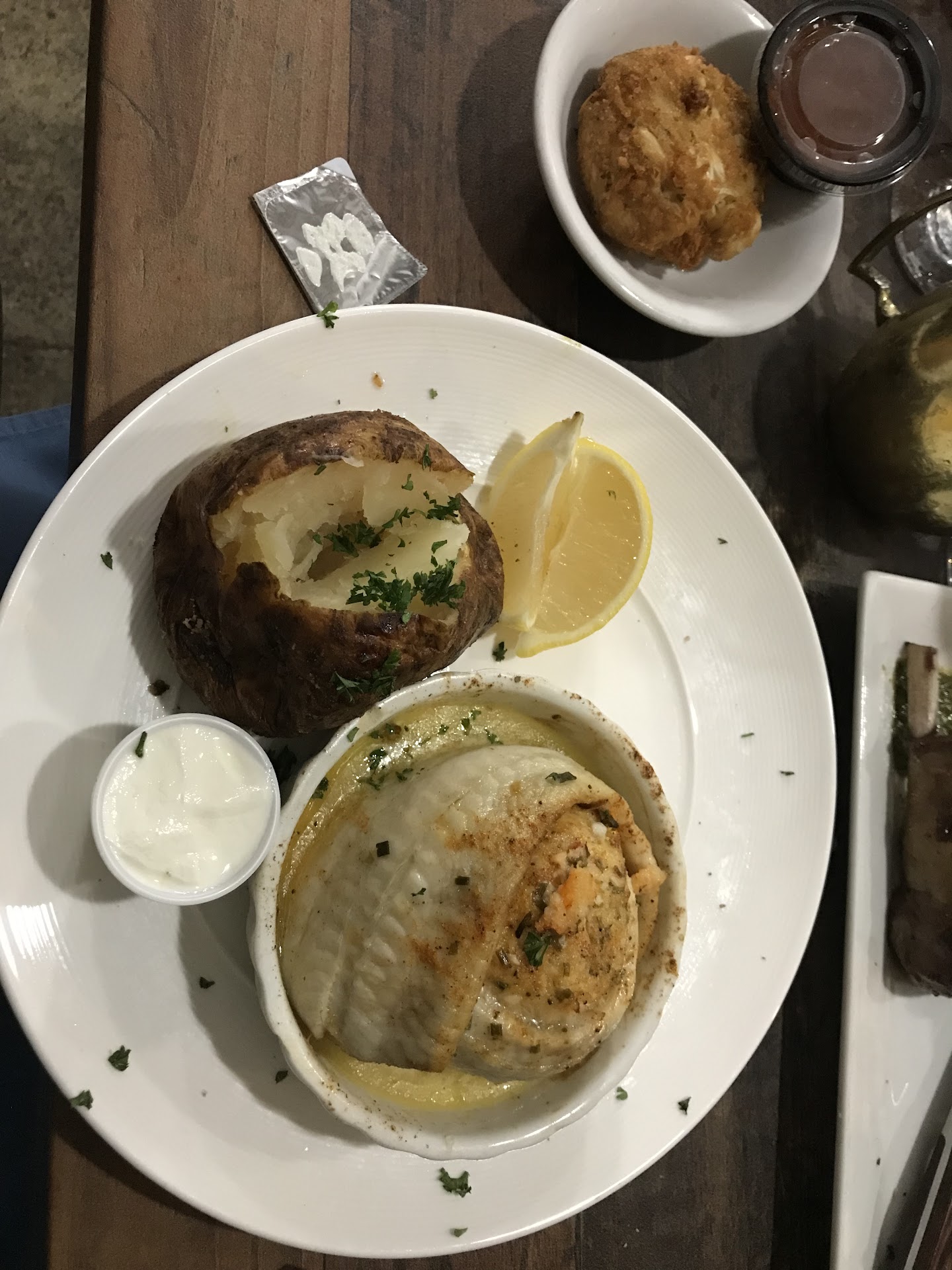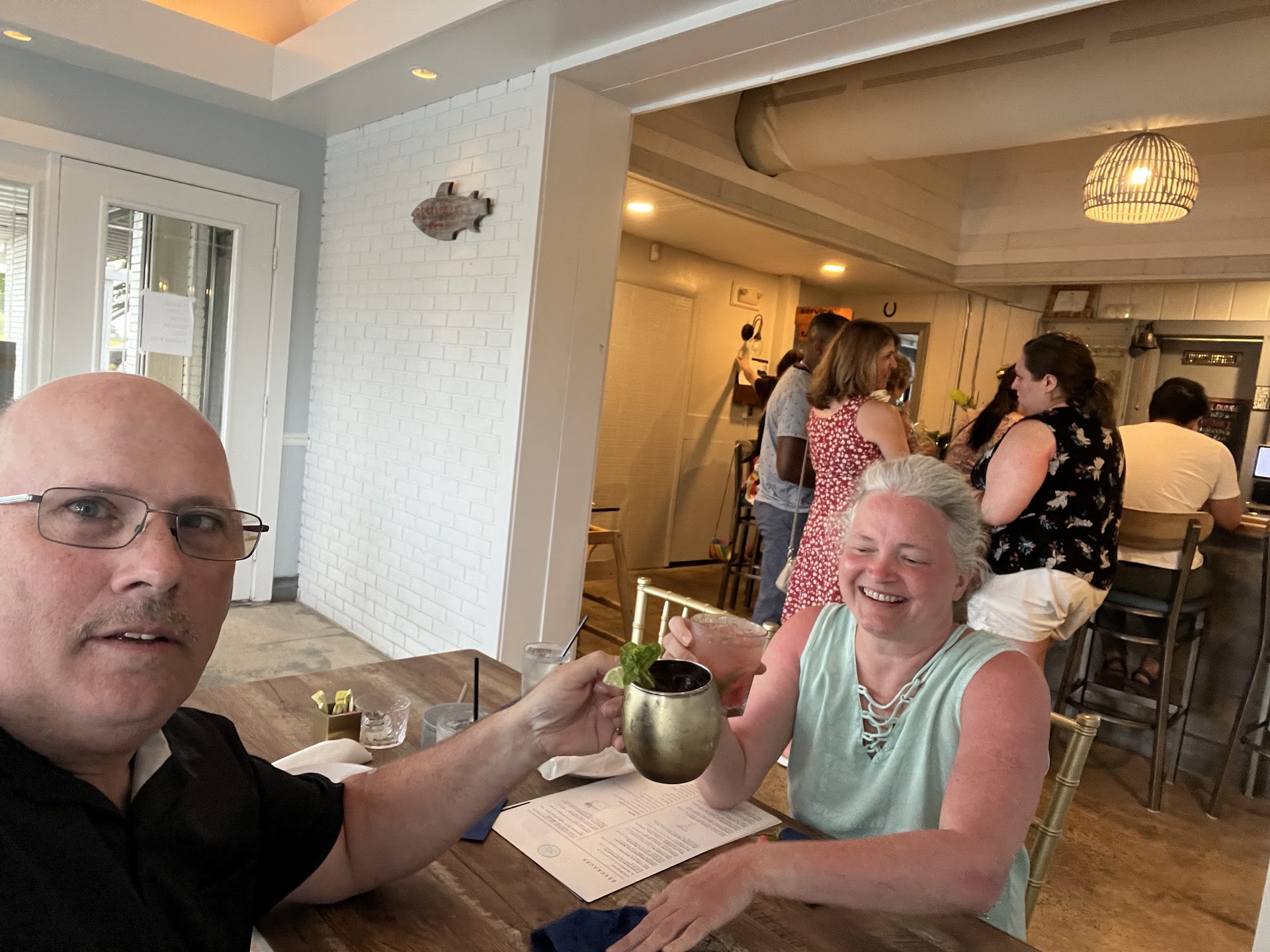 So not only are we sitting on a leaning surface, there is another couple 6 inches from us and 6 inches taller than us, blocking the view to the creek. I did work it out with the wait staff to switch our table to the preferred seating (which they were pleasant to work with), but when you are calling yourself a fine dining restaurant there are certain expectations that comes along with that, which were not met.