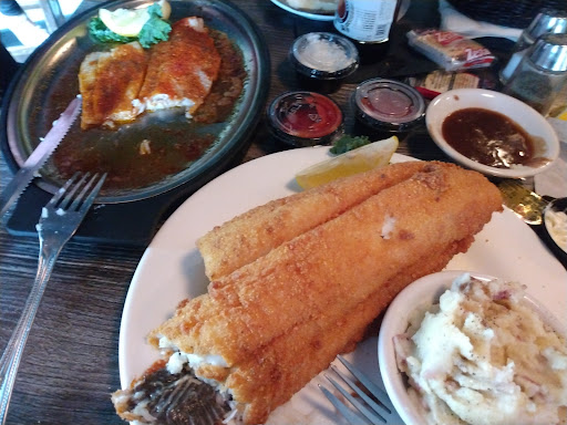 My friend loved her fried chicken. My other one loved her New York Strip steak. They both described it as perfect. I wanted to get seafood so I got the Seafood dream of crab imperial, scallops, and shrimp topped with mozzarella. I was really disappointed in it, especially since it was so expensive and as a seafood restaurant I expected my meal to be amazing. The cheese was so thick and the while thing just tasted flavorless. I enjoyed it the least out of the three seafood restaurants I went to. The waitress seemed annoyed I asked for her opinion on what to get and you cannot substitute anything in any dishes ( I surmised from the few questions I asked). Least friendly staff out of all 5...