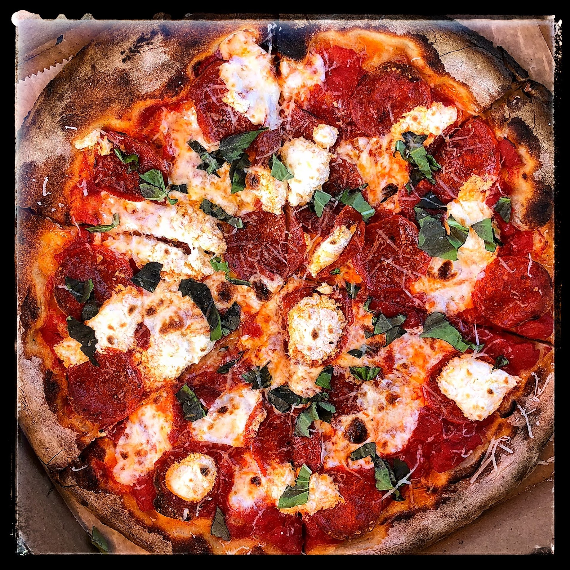 Worth the wait. We ordered 4 pizzas yesterday at 6:30 and had an hour wait, but it was worth it. They text you when you order is ready so you don't have to stand there in the heat. They do not take online or phone orders, walk up only. I can see why. They are a little food truck with a small oven, but they make big flavor. These are more Neapolitan style pizzas. 12 inches, and a thin crust with burnt edges (just like in Italy). Most folks will eat a pizza by themselves or, at least 3/4 of it. The toppings are awesome and not overdone, just enough. I really liked the PepperPony with the Sweet Heat. (its a hot honey sauce). They have a nice selection. BTW, great customer service. They called to let me know they were out of mushrooms, and asked what I wanted instead. Then they threw in a free pizza for my inconvenience. I will be back, but at 4:00, when they open to avoid...