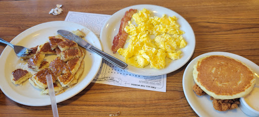 All the pancakes were overcooked on one side and on a separate plate. Nothing looked consistent. The eggs were probably equivalent to 2½ to 3 eggs scrambled. The chicken tenders were anything but premium.