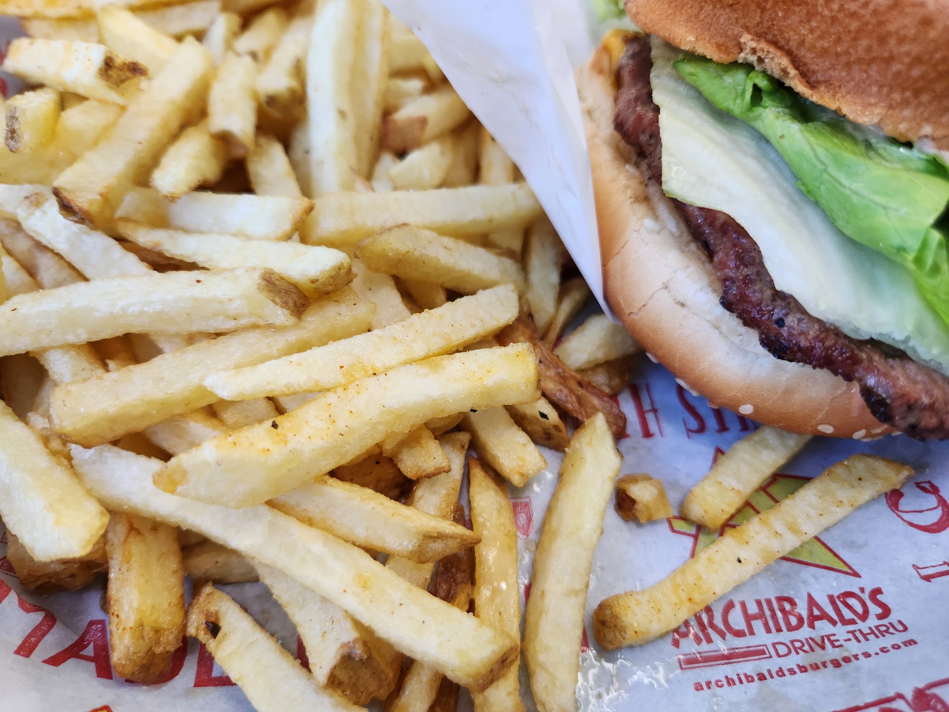 Read moreTonight we wanted something quick and I was in the mood for a patty melt so we swung by Archibalds. We used to go there often but in the past few years we hadn't. Tonight we thought why not Archibald's. The food isn't bad, but it isn't great either,, but recently it has become WAY over priced. A double cheese burger, pattymelt and 2 regular cheese burgers, small fry to share amongst 4 of us and onion rings, we did not order any drinks came to a total came of $54. Yes $54, no joke. I actually had to have them repeat the price when I came to the window since it wasn't available when I ordered.