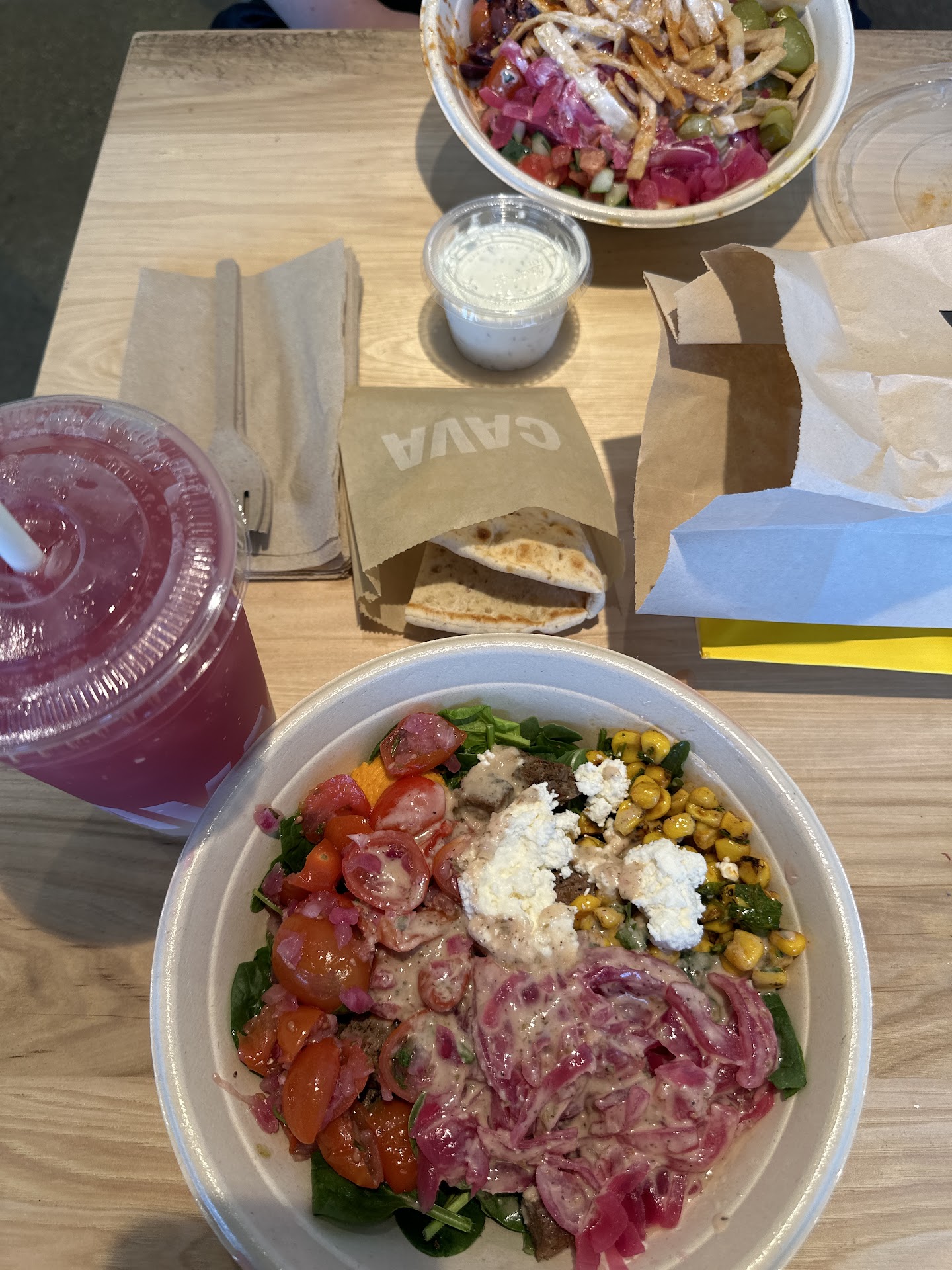 Read moreI had a great first experience at this CAVA. I didn’t know a “chipotle” like experience with Mediterranean Food Exists. In a way I feel like there is more value at this place, and more choices in general. You can order pre selected menu items or you can build your own bowl. It can be a bit overwhelming and to be honest still overwhelming each time. Once you have tried the different sauces, sides, etc. it will all be a lot easier. Plus they have a great selection of drinks as well.