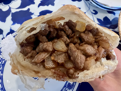 We were recommended to try their famous pancake crepe and my eyes lit up when I saw you can do a duck filling, and it did not disappoint. It's savory with the hoisin sauce and has a surprising crunchy element to it, the texture is INSANE and it all works so well together.