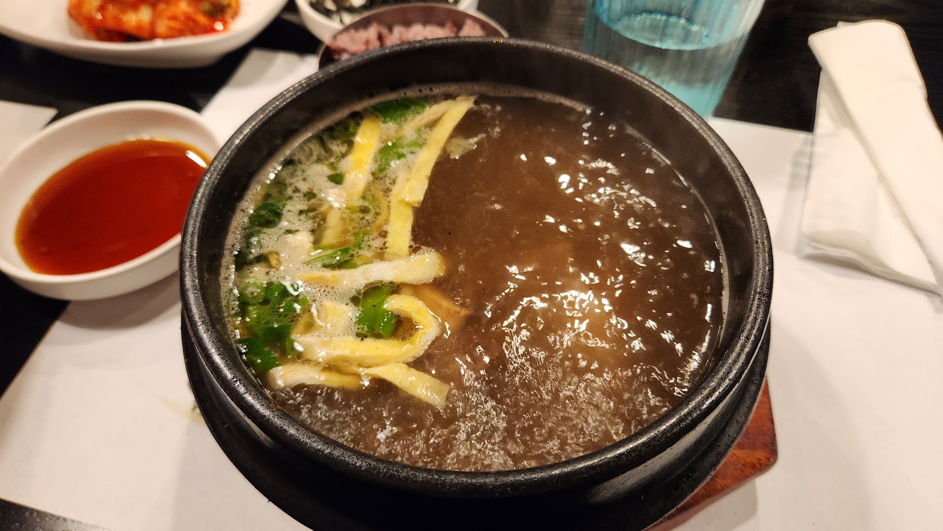 I got the kalbitang and it came out boiling, hence the picture. My boyfriend got the kimchi beef soondubu with medium spice (also boiling) and beef bulgogi combo. Both dishes were great, although I'm definitely more in favor of the kalbitang. We both really enjoyed the side dishes too and ended up asking for a refill.