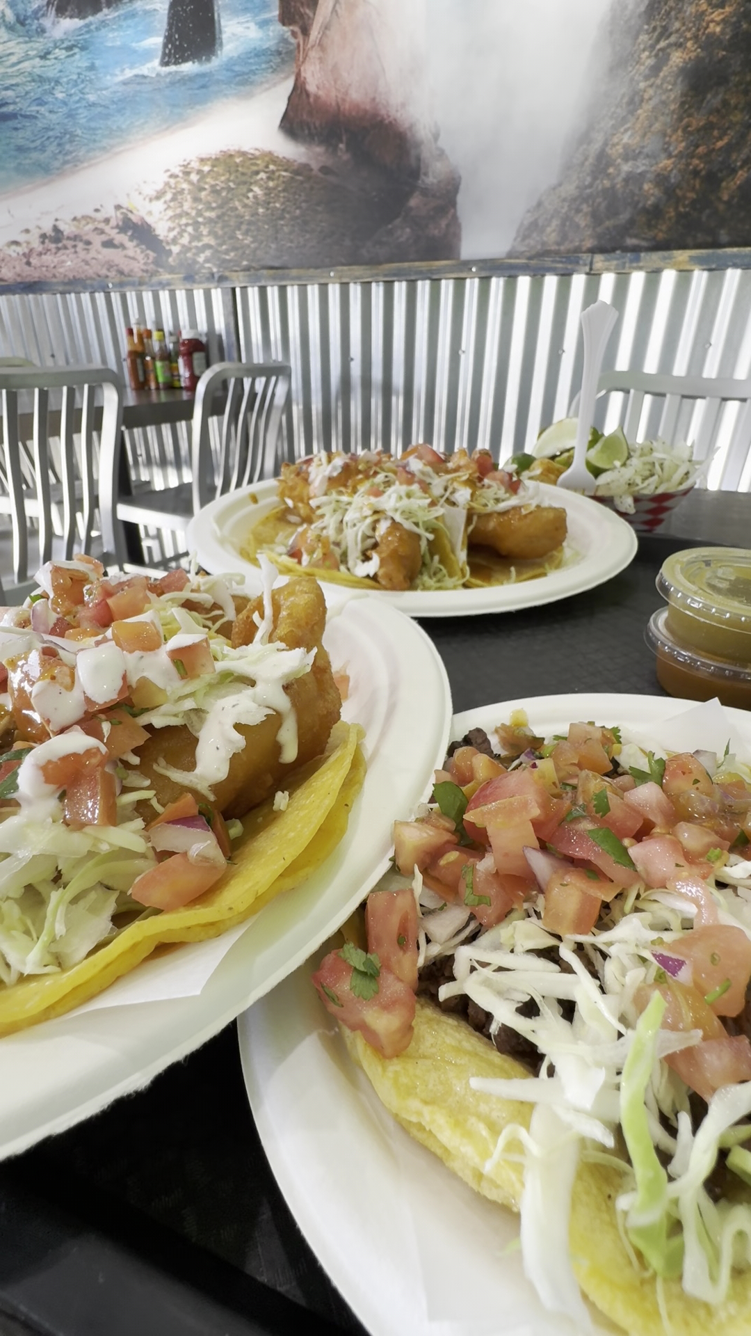 Our first visit today and it sure won't be our last! What a pleasant surprise. My fried shrimp tacos plate was excellent. Served with rice and beans and a beverage. The portion so generous I could not finish it. All for $12 and change! Unheard of! And those tacos were loaded with Shrimp! Hubby also had a shrimp taco, he loved it, and a huge seafood cocktail that's a meal in itself. We both waddled out swearing we were never going to eat again because we were so full, and all for @ $38.