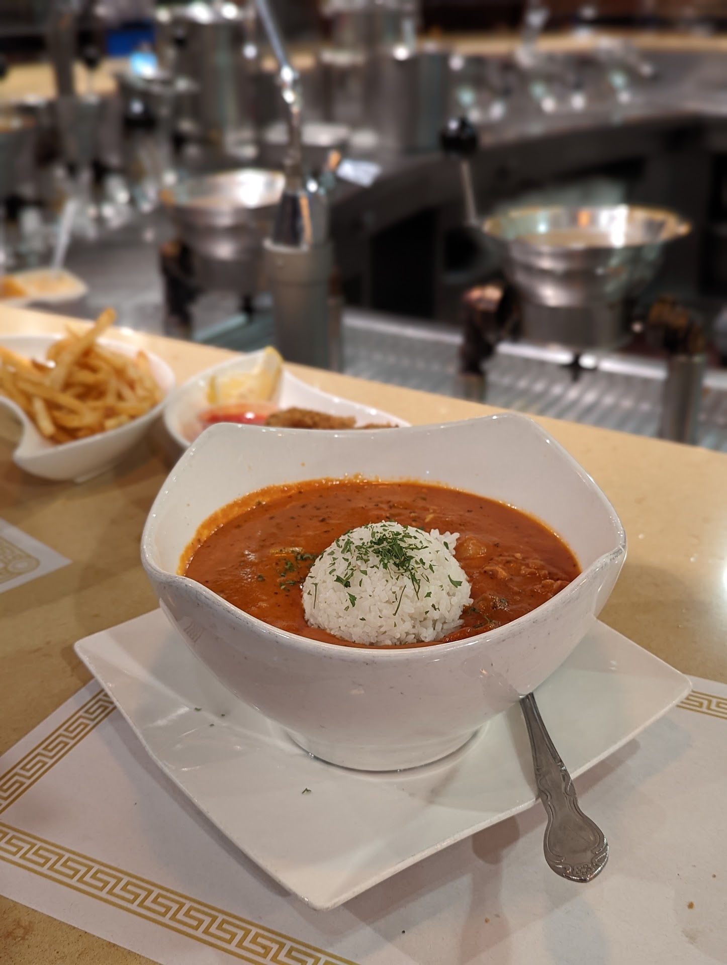 Fisherman's chowder (lunch price: $17.50; dinner price: $27.50): if you like New England claw chowder, this is the option for you. This chowder has calamari, shrimp, scallops, crab, mussels, and white fish in the creamy chowder sauce.
