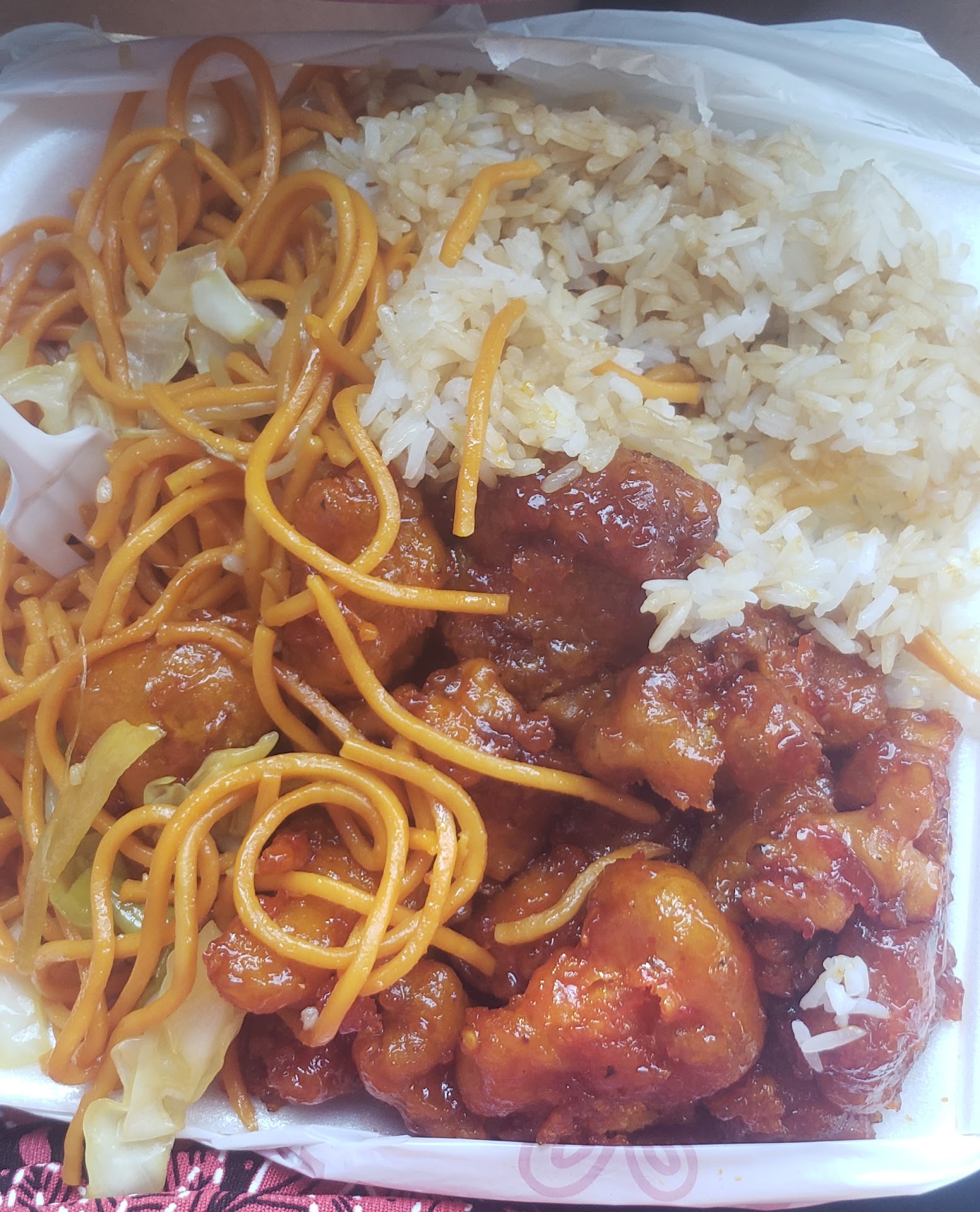 Ā Ā Ā Read moreIāve been to this place twiceā¦Yes the portions are big but the food lacks some serious flavor⦠the orange chicken is overly sweet, I donāt even know if it should be called orange chicken⦠it tasted more like it was covered in a honey sauce or something⦠rice and noodles had no flavor either⦠also ordered beef and broccoli (it was ok) and bbq chicken (very dry but at least had good flavor)⦠I guess I canāt complain too much because of the price but still I donāt think Iāll be going back anymore⦠Iād rather spend a little more money and get food thatās cooked right...