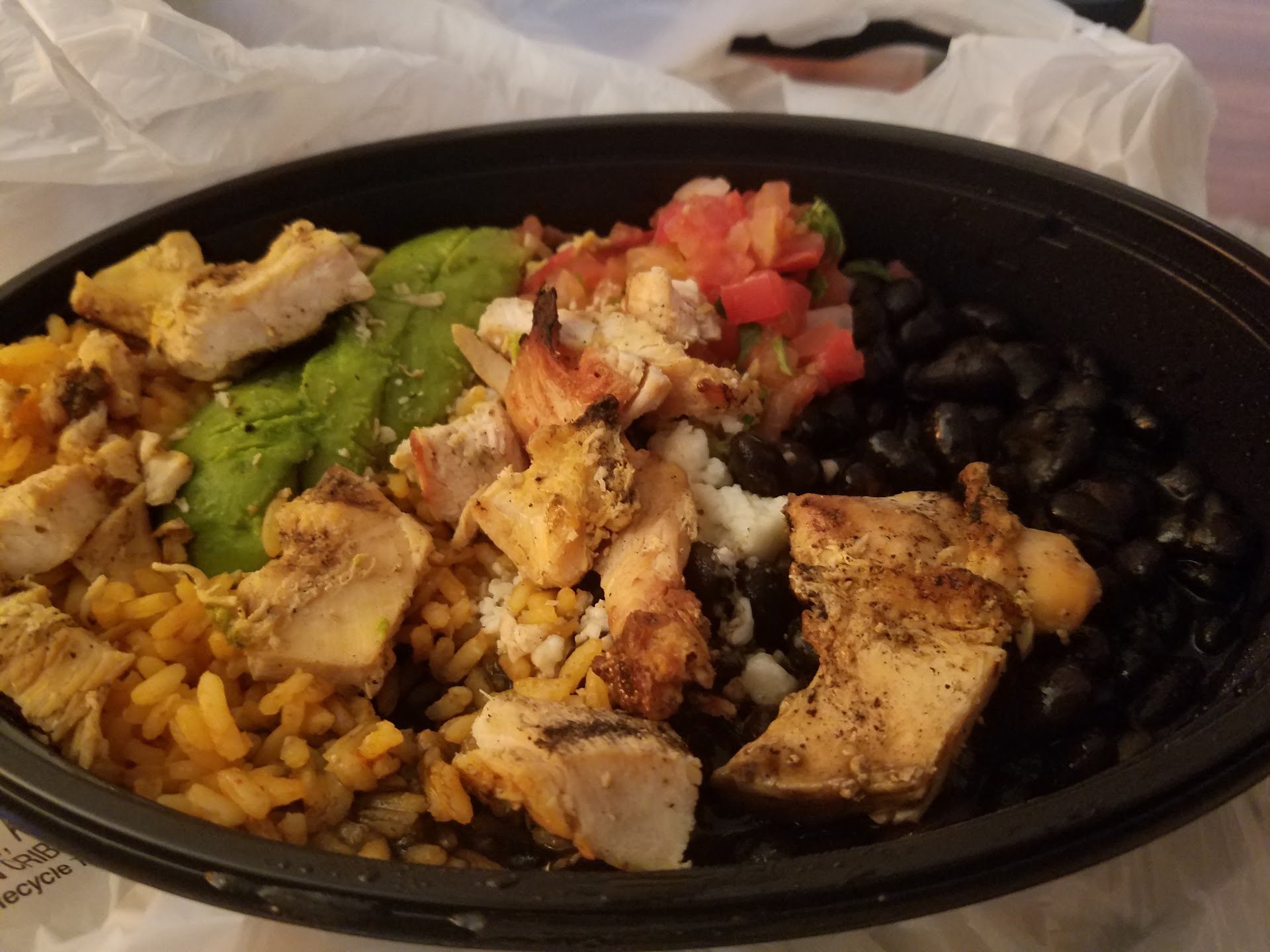 Read morePlaced an online order, for pick-up. Got some weird thing that i didnt order. Didnt find out til i got home, cause i never check whats in the bag... thats my bad, but i've never had a problem with getting things wrong or not the correct stuff. Ordered a Grande Avocado Chicken Bowl... got some weird bowl with broccoli in it. Not ok. Seriously. I ate the bowl anyway, cause i wasnt going back to fix the order. I love cotija cheese but the "cotija" they used... it didnt taste like anything. It was weird.... it was just a bit of texture, no flavor. I threw out basically all the broccoli, sonce there was so much of it. Chicken tasted good, as always. There wasnt as much rice as there usually is in their bowls, and there was A TON of black beans! Totally bummed out! I order here pretty frequently, never had a problem like this. I dont know what happened this time around, but step...