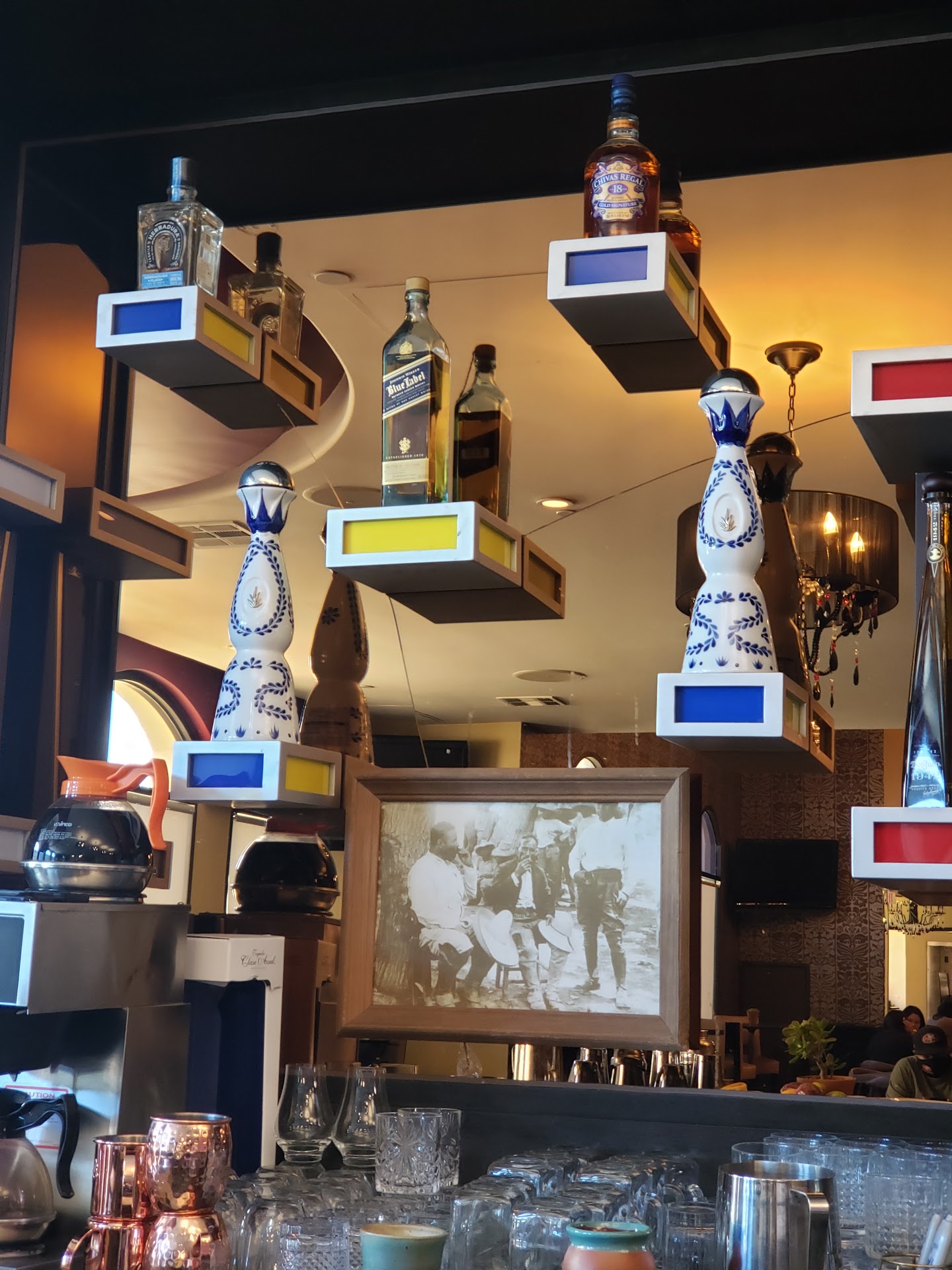 We went there with girlfriends because we saw their drinks on Instagram. They looked really cute and really refreshing. The location's really weird. It's on the 2nd floor of like a business complex...? You have to park and walk to it... you can't see it from the street. Then once you get inside it seems like it was a dance hall before that they tried to make into a bar that used to be a club now it's kind of a restaurant…. it's just a weird vibe. The waiters and waitresses were nice but they took literally freakin forever. It took an hour to order two orders of enchiladas. Then longer to get our orders. The drinks were not good and not strong at all (this is coming from someone who drinks like 2x a year) and like 20 bucks each. The food was not great. They tried to make mole sauce but didn't work. They also ordered their Tomahawk steak and it was gross. Given it 1 star because they had a singer singing well known Mexican music and she's sang very well. But it was also so so loud I literally had to scream to hear my friend who was with me at...