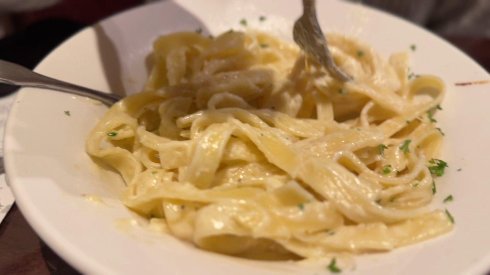 Let’s talk food. What slapped? • Mozzarella Sticks: I am not even going to lie, these were the main event. Crispy like a dream, not a drop of grease, and that cheese pull? Illegal levels of satisfaction. • Fettuccine Alfredo (Kids): Creamy, rich, pasta cooked like it actually mattered. My daughter was vibing with it. • Ravioli and Lasagna Classico: The kind of combo that makes you want to lean back in your chair with a happy sigh. Multiple reviewers hyped up the lasagna, and they were not lying, it is a hit. • Soup, Salad and Breadsticks: Old faithful. It is the Olive Garden signature for a reason, and they nailed it.