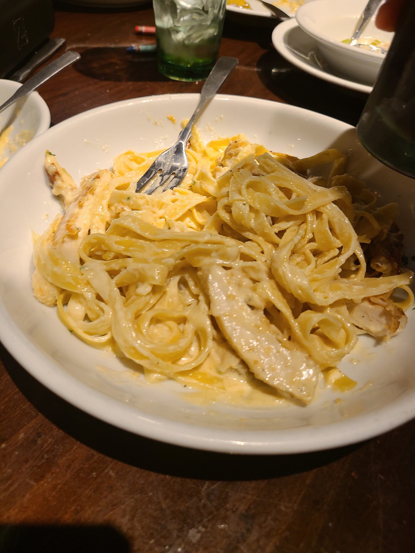 Read moreProbably one of the worst dining experiences I've had recently The girl that was serving us was trying her best, but the food was horrible it took forever to get anything to the table and when they did it was either ice cold or just not good when they finally brought out the food they told us that they had run out of french fries and asked if we wanted a different side dishes for our kids they offered grapes or broccoli which is not a horrible substitute but when they brought the grapes out there was literally four grapes and a little tiny side cup, My wife's food didn't actually ever come out they brought out my son's pizza first which was ice cold the cheese wasn't even melted and they brought my daughter's fettuccine Alfredo which should be a slam dunk for a place like this and it was horrible and cold then they brought my daughter's chicken strips which she said she actually liked and they were very good but no fries and then the grapes as I said above. I ordered the ravioli once again for a place like this should be a slam dunk they were horrible the sauce was watery the noodles weren't cooked all the way and it looks like they put it under the salamander for heat and let it sit for like an hour it was terrible and the whole time we're still waiting for them to bring out My wife's plate which never actually came,after about 10 minutes we literally got up and just walked out. About the only positive thing I can say about this place is that the staff were friendly and polite but the food was absolutely some of the worst food I've ever had. Even the breadsticks were bad, The iconic Olive garden breadsticks were bad!!!!! How is that...