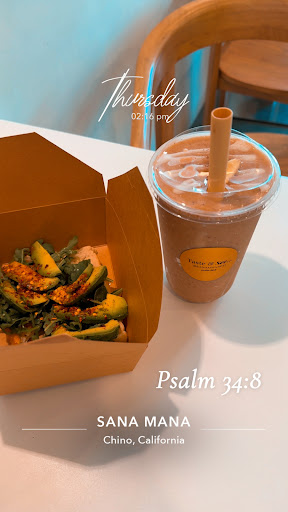 Read moreJust visiting Chino. Came by Sana Mana 2 days in a row! Love that they include Scriptures on the drinks. The owner’s Mom is super sweet. She recommended the Avocado Toast & it’s def a hit! Aesthetically pleasing &...
