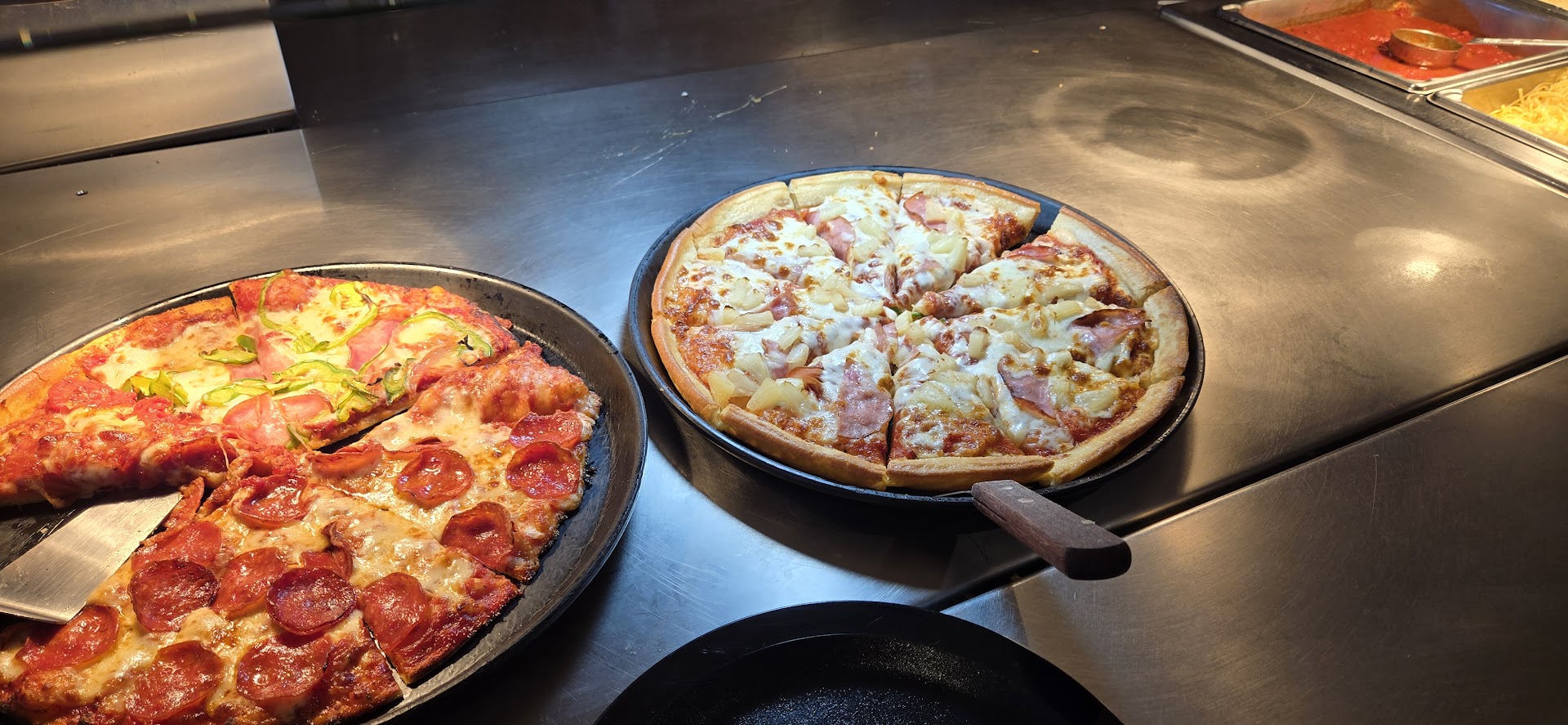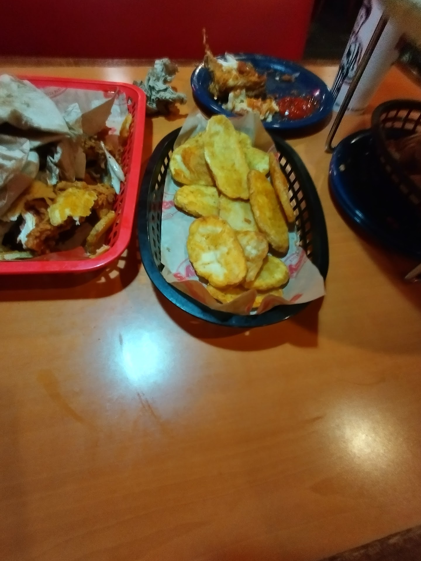 Read moreWorse feeling of discrimination ever, little kid @ counter with attitude takes my order tell em cook it a few minutes extra, told em cooked well please.. he acknowledged & said ok so it comes raw cheese not even melted & it was super doe'y. Took it back told them it was raw I would like a new one said with attitude, we'll let me see what I can do about it.. started walking the pizza to thee oven & I told em please don't throw it back in thee oven it won't cook right I would like a new one, kinda yelled back @ me saying yeah okay, so I walk away not saying anything cause I'm not trying argue with someone over something opposite of what I clearly asked for. So waiting @ the table about 30 minutes before pizza came back eating mojo potatoes I tell my buddy, (damn I swear they used to be thicker & larger) he agreed so we finish em with the delicious chicken. As I get up to go get a refill I look @ the tables around us & boy the difference between the mojo's we had & they had was so upsetting I wanted a refund but only had 1 left before I noticed SMH so pizza comes 30 minutes later & this time it was cooked perfectly but very very light on the pizza sauce even more upset now I couldn't finish that 1 slice SMH never again...