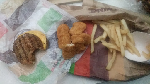 WARNING: Inspect your "food" very closely here. I got through eating most of a burger and part of a pill fell out of the inside of it. The elderly lady at the drive up blew it off as flour and rudely walked away while I was talking. She came back with the Mgr who just stood there saying nothing while punching buttons on the cash register and I told him start to finish what happened. He never said a word until I asked if he heard me and all he said was "yes, sorry sir." And it looked like he had a smirk on his face. As I drove home my heart rate and BP skyrocketed. The last few miles I felt falling down drunk. I barely got into my house and passed out cold for 4 hours. When I came to my legs felt weird and I got up and laid down on my bed and next thing I know I woke up 12 hours latter. I then filed a police report and a health dept. Report. I also called another location and explained to that Mgr what happened and she said the district Mgr would call me immediately. But they never did. BK could not care less about customers or contaminated food. I'm guessing someone accidentally dropped their break time "treat" into my burger. Or maybe it was their meds. Who knows. All I know is it's the last time I buy anything at BK and if you buy anything there it probably would be wise to inspect it thoroughly before...
