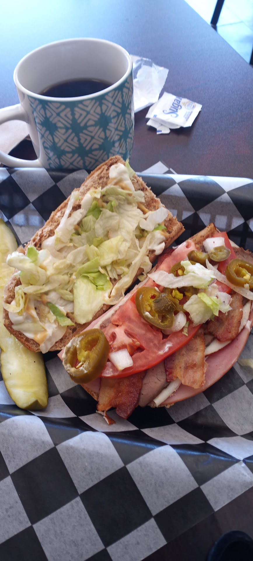 How did I find Sliced Deli? Well I was across the street at a coffee house in yet another 100 year old building and asked where I could get a quick sandwich. The folks at Box Car Coffee pointed across the street, and rail road tracks, then said Sliced Deli. They then said, they were really good; oh boy were they right about that.