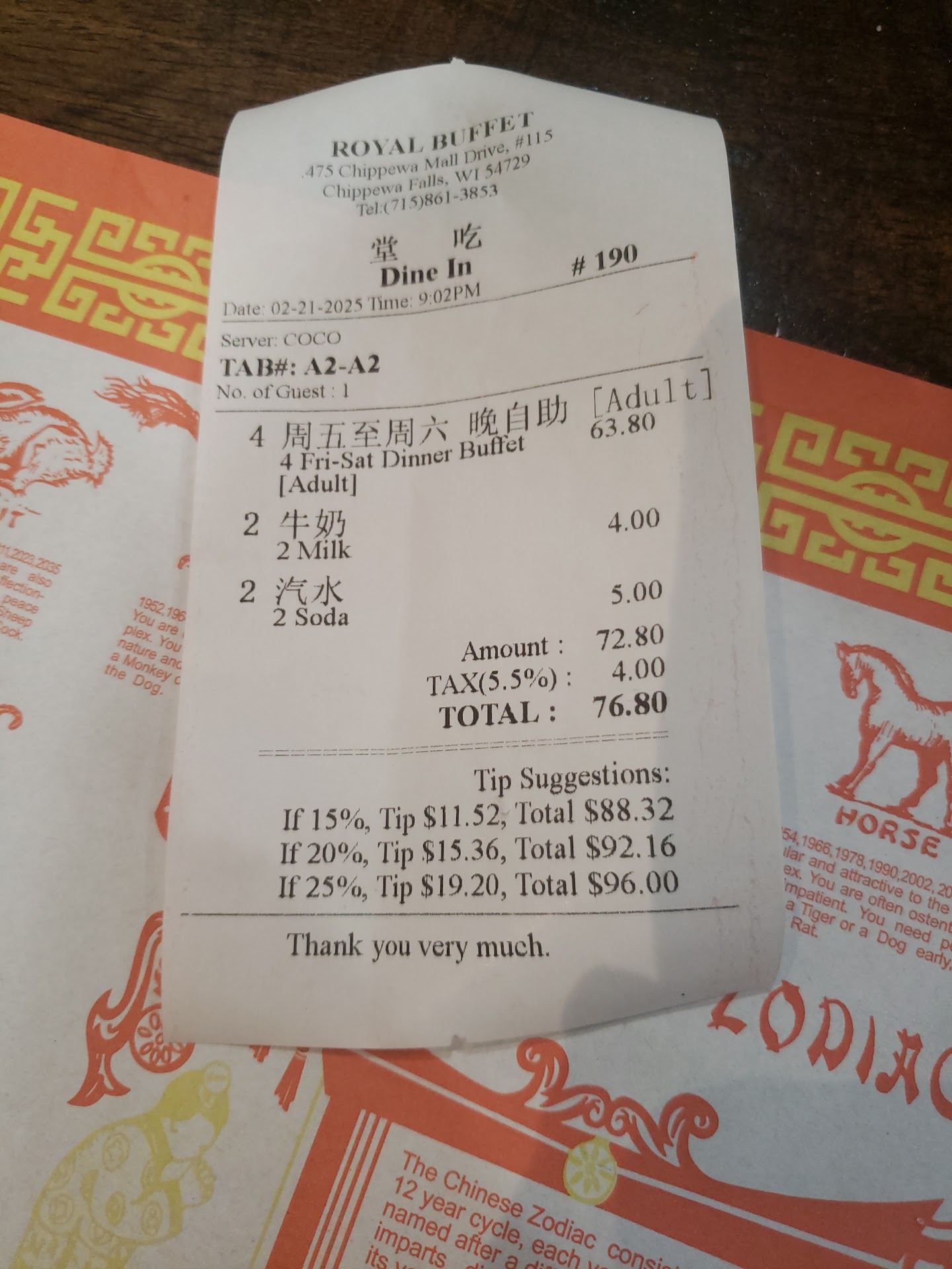 If I could give you no stars I would, we came in expecting the usual cause normally it’s pretty good food and service, but today was just horrific, we came in and yes it was a little bit busier, we asked for a booth and one of the female coworkers asked how many people so we said two, she went to seat us and I nicely asked if we could have a booth, she proceeds to say “oh you want a booth or you want to wait” with a very rude tone, I said we would take the table that was open, so as she has this guy coworker walk us to the table and get there, I mean there’s still food all over the table and he takes a dirty rag with I assume was just water, wipes the table down and then puts the paper menus right on top of the soaked table. As we go up to get our food and then sit back down, none of the food was hot, it was all luke warm, some was even cold, and really none of it was very appetizing except the crab rangoons, so we decided to try and finish our one plate (mind you this is a buffet) and then I went up to go pay. Here is where it gets even more interesting, I went to hand the same lady my card to pay for the bill, and she pulls out a calculator with two different receipts and tells me that I need to add 2.11 as a tip so it adds up to the other receipt, and mind you she’s basically telling me I don’t have a choice and getting firm with me, and mind you this has never happened before, I’ve never had to add something to even another receipt out, I wasn’t going to tip, I was very upset from the moment I walked in, and frankly I don’t think this was professional at all. Don’t go here unless you want to lose your appetite...