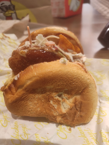 We ordered a CG chicken and one honey barbecue with no slaw. To drink we split a Apple jack 's cereal milkshake.It was great. The chicken was moist and had perfect seasoning. The bun was not too overwhelming or sweet. My husband loved his honey barbecue. It had kettle chips on it which at first he thought was strange. But he was so wrong. It made the sandwich. The sauces they use are awesome. Plenty of food. I think if we had sides we would have been over stuffed. We were there on a Sunday at 1500. Not too many people waiting in line or eating at the food court. You can bring your drinks into the food court. By 1730 when we're leaving,people were lining up for the restaurant and coming into the food court. A little pricey at 36 bucks for one milkshake and two chicken...
