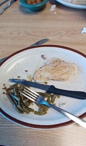 Hubby liked one particular item on the menu, I tried a few different things. I didn't like their hamburger, it was dry. So, the last time we were there, which will be the last time we will ever be there, I wanted to try the "grilled chicken with veggie and choice of potato or roll". I chose green beans with no side roll or potato.