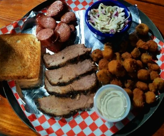 Read moreThis place has been getting a lot of attention on social media, so my family decided we needed to try it for ourselves. First of all, they were a bit busy and they only had 2 ladies waiting tables. These two ladies were working their tails off and we did not for once feel like they providing anything less than quality service. Good job ladies! I hope they find you some help soon!! Most drinks do come in either bottle or can. They not only save the restaurant money by not having a beverage machine that constantly needs maintenance, but these also saves the customer (because honestly, when was the last time you paid a $1.50 for a soda at a restaurant). Who am I to judge them on something that seems like a smart business idea. The food so far has been fantastic! Husband had brisket & smoked sausage with okra and coleslaw. I had the jumbo shrimp & tenders. The chips are homemade and very good. I love the seasoning on everything and will definitely be coming back...
