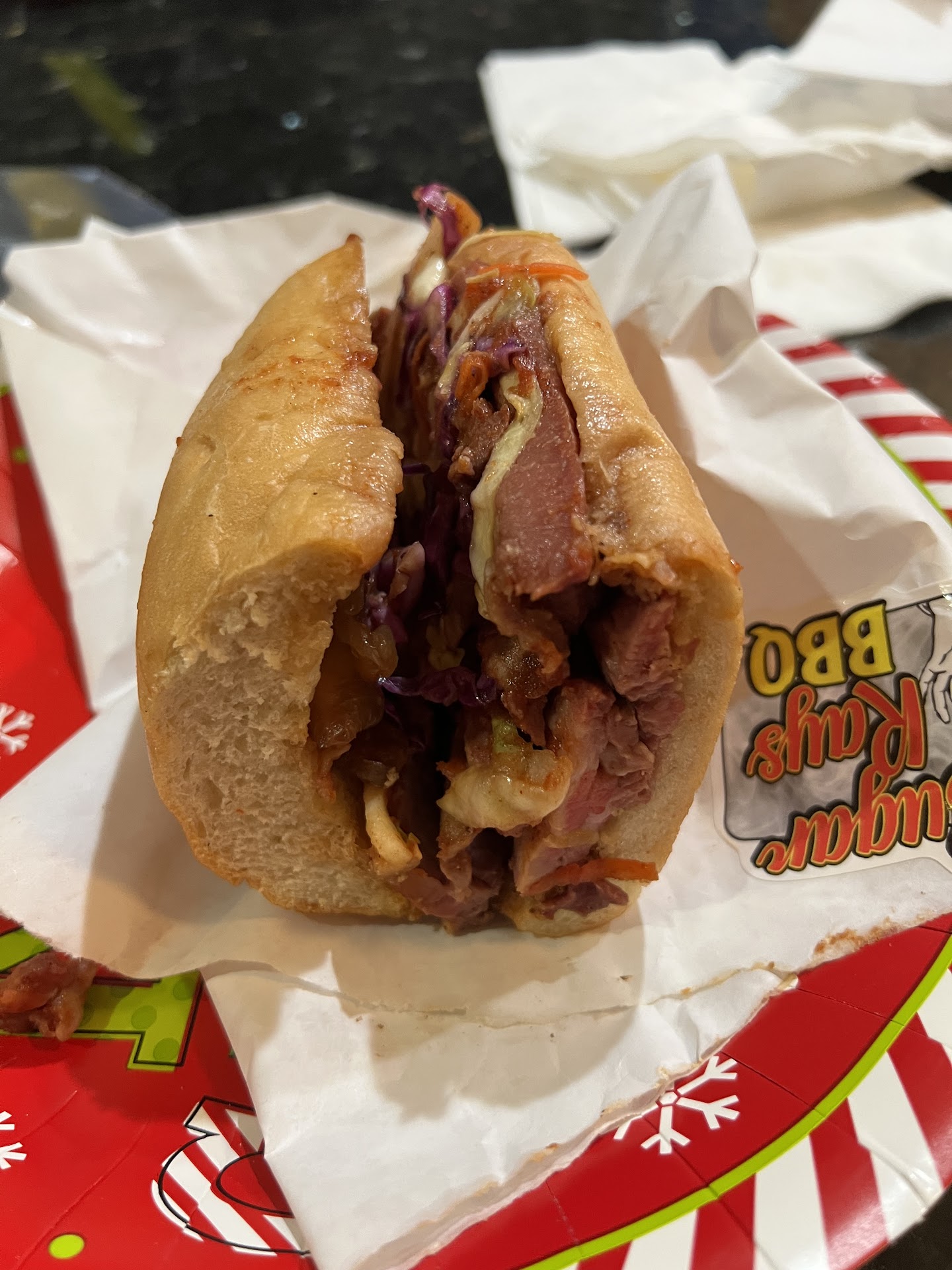 The food... I always get the three meat combo - tri tip, ribs, brisket. Ive never been dissapointed. I also fully endorse the tri tip sandwhich and jalapeno mac side. But my go to is almost always the three meat combo.