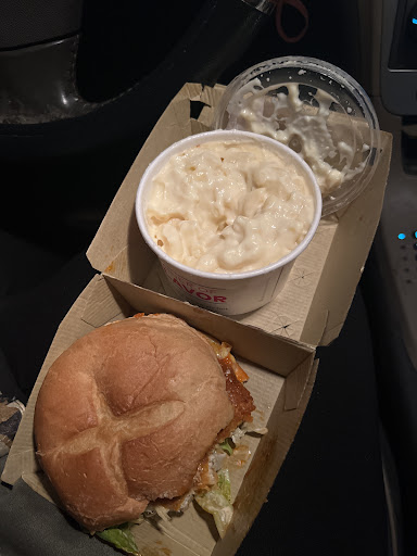 Today was my first time ever going in there I never been in any Arby’s I was exiting going over there drove 20 minutes to get the new popular meal the spicy sandwich Diablo they didn’t have it so I said let’s try the buffalo sandwich then she said that they have a regular sandwich then I said that’s fine I’ll take the regular buffalo sandwich and a side of mac & cheese and a small Coke I went to the window she was super nice nothing happened I took my food I gave her my card and as I drove off I stopped in a parking lot to eat and I’m opening the bag normally I found the mac & cheese too cold to eat I can’t even taste the flavor you know I open the sandwich the chicken also was cold not sure what happened not sure if it’s just sat there and got cold then they give it to the customer like that or the warming wasn’t on at least but that was my first time and it will be my last because I expected something else but np hope they get better for...