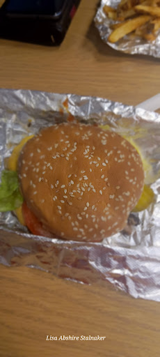 So Never ate at Five Guys Before! I must say I was quite impressed.upon pulling up the parking area out front was very clean no trash or litter on sidewalk.upon walking in I was Greeted with a smile and a "welcome to Five guys" from the staff. The inside dining area was very clean,well organized and looked as if was freshly moped! They were in the middle of Training a new crew member. Was Greeted by Two young ladies at the front counter and I Told them I was new to their establishment. I asked what was the "Best Burger in the house "Tay" who was I Believe a "shift leader" recommended the "Bacon cheeseburger all the way" also I must add all the Toppings are FREE..BONUS...I wasn't feeling the Bacon that day so I went with the same burger and no Bacon. I have to say it's been awhile that I've found a burger Joint that could give me a Burger the way Burgers should be. FIVE GUYS did just That. If you get a burger and you don't have juices flowing down your hands while you eat it MTO FRESH then you ain't at the right place. The Burgers are 100% Beef cooked to perfection on a Flat top grill! I also opted for the Cajun fries which Tay said "They got a little kick" she was 100% on point! Overall I'll give FIVE GUYS AN A++! Now also I will say perfection doesn't come cheap neither does quality but this place is one you don't want to pass by! Oh did I mention the fries are made using 100% Idaho potatoes. They also have peanuts in the shell for you to snack on while your meal is prepared! The condiment section was ultra clean and neatly stocked! I was left thinking could this place get any Better?! I am now a Fan of FIVE GUYS and if you go there I'm sure you will be too, if you like your Burgers fresh and sloppy but sloppy in the way a burger should be! I will be going back to try one of their awesome looking shakes as well! Who knows maybe I'll see you there. If your in the christiansburg area put this place in your Google maps and stop by they also Have Hot Dogs as well! If you see "TAY" SHE won't Steer you wrong on suggestions, HER LEADERSHIP QUALITES ARE TO BE COMMENDED. FRIENDLY,FUN AND YUMMY THE WAY A BURGER JOINT SHOULD BE! FIVE GUYS YOUVE MADE ME A FAN CANT WAIT TO GET BACK FOR THOSE...