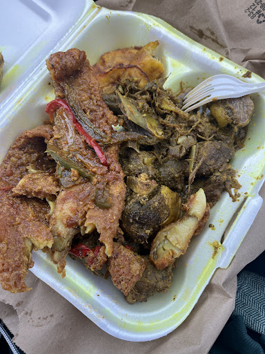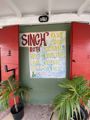 Singhs was the first stop on our food tour (Taste of Twin City with Virgin Island Food Tours), and we decided to come back the next day to get some food before heading to the airport. It's a great stop for food to go and very reasonably priced! We had doubles (highly recommended!), plantains, stewed goat, and some sort of fish with peppers. It was a bit loud while we were ordering because another food tour happened to be there when we came in, so unfortunately, we didn't get a good sense of what exactly we were ordering (hence my vague descriptions of what we got), but I suspect we would have enjoyed almost anything we had picked out from all the fresh, hot options they had ready to go. I forgot to take a picture until we had already eaten half of the food, so hopefully the picture doesn't do it too...