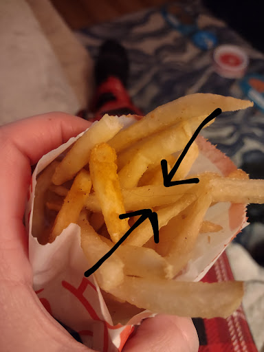When we asked about the sauce, they gave us the correct assortment, but when I went to the counter to make the fry situation right, I stood there and watched as they used a used fry container to fill half with new curly fries then they took tongs and put the old ones I brought to the counter on top to finish it off. While not pleased with this solution, but I didn't know what else to do, I went back to the table. A few minutes later, we watched as they poured the remaining regular fries from the returned container which had been out for at least 15 minutes to the fry dumps to be served along side another customers order.