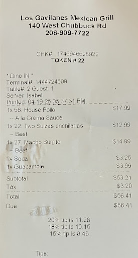 Read moreWe had a party of 3. The server was very friendly. She was polite and attentive. The food was quite tasty but it was a little spendy. See photos attached of food and receipt. The enchiladas Suiza was great. It had a really tasty green sauce. The chips and salsa were great. Very good salsa! Very tasty 😋. Overall it was a good experience. The guacamole 🥑 was spendy for the amount I received that was the only major minus. Also, they don’t serve Diet Coke which is my...