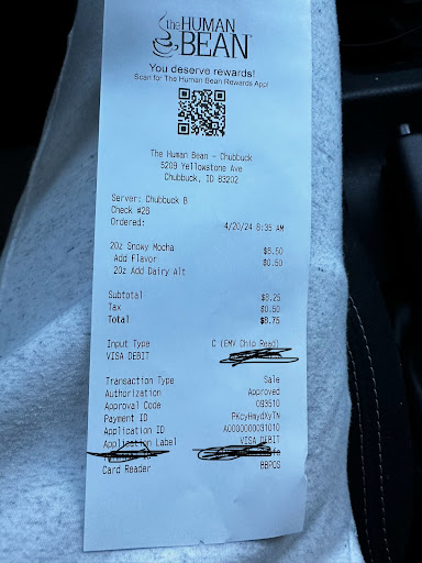 Read moreI was excited about Human Bean since the location is right up the road from work. A few weeks ago, I went for the first time. The gal recommended me a drink adding vanilla syrup with Half and Half. I loved it! I've gone back 2x since and each time the Half and half is not added. Which isn't the taste I want and I have thrown out 2-20 oz drinks. I went back this time hoping the gal who made it for me the first time by chance will be there. The window people are always sweet which makes it not so bad but still money wasted and I go un-caffiented for...