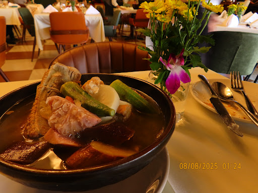 By then, I was tired of all the delays and asked for a container to pack the sinigang, but the one they gave only fit about 1/3 of it. Since our waiter was not very attentive and we had to ask for many things while waiting, I approached a woman in black who was going around to each table and seemed like a manager to ask if they had a bigger container. She told me that was the only size, but moments later our waiter brought me a larger one, and the manager looked confused.