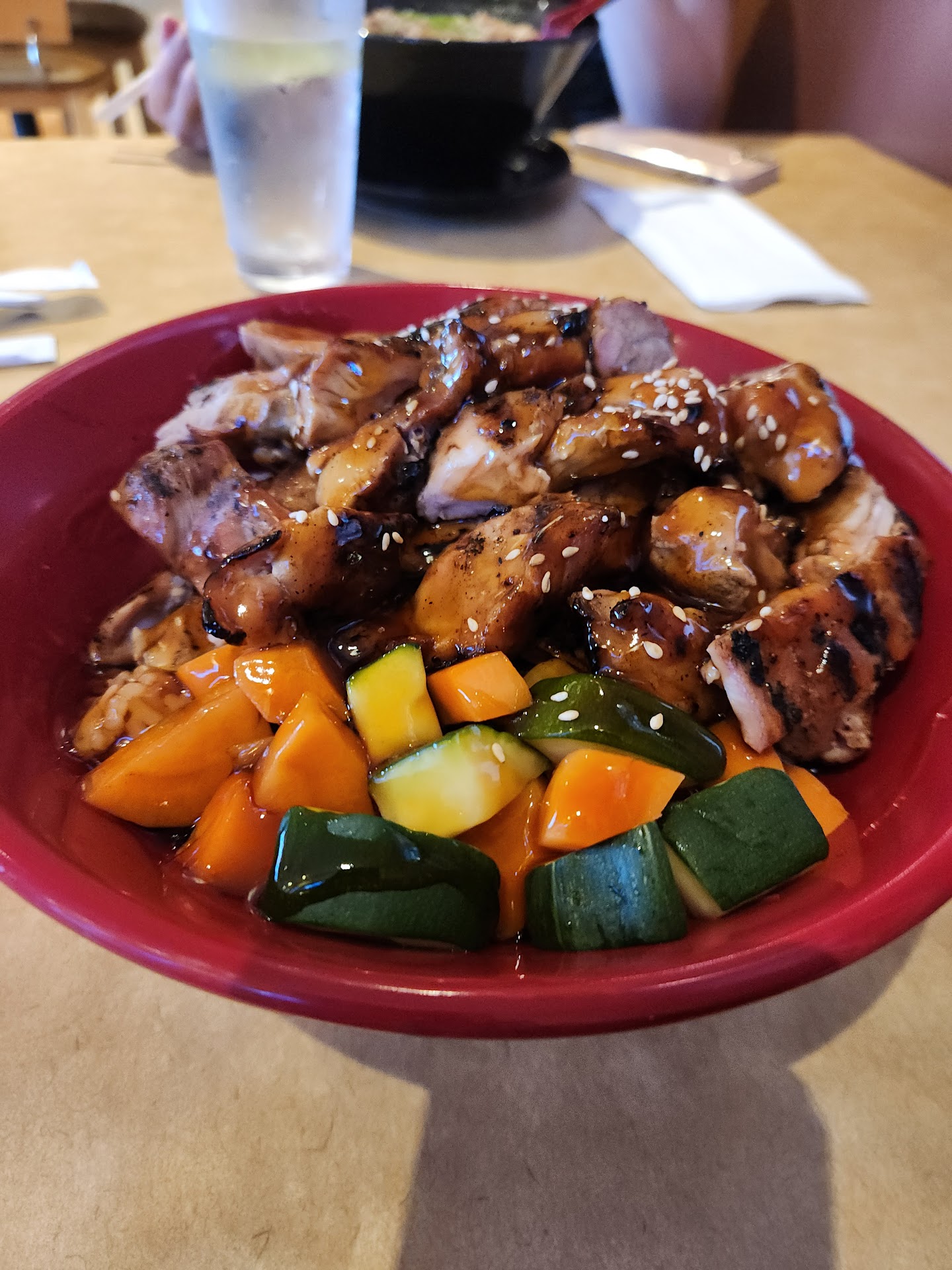 The food Is fair. The service is Awful!! My stomach is very delicate and I get sick with some foods. Going out to eat it always worries me eating something that gets me sick because I get sick for 2 days. For the same reason I usually ask for vegan or vegetarian options. When the waitress came I asked her what the plate had because the menu wasnât very specific. She was extremely vague and her answer was âThatâ in other words she didnât tell me. I specially said, as long as it doesnât have pork and I also asked for edamame. She came back with my husbandâs food but didnât bring utensils. She took a while before coming back and when she came with my food, my husband asked for utensils. My food on the other hand had pork!! I asked her if it was pork and she said yes!! I told her I didnât eat pork!! She took the plate, came back with the plate and the menu and pointed at the picture saying it has pork!!! I was really getting upset and told her, that I specifically asked her for NO pork, same plate just NO pork!! She took the plate and when she came back she brought the SAME plate but they only removed the visible part of the pork but you can still see it had little pieces. I didnât want to keep arguing so I ate and tried to remove the little pieces. By the time we finished, she NEVER brought my edamame!!!! On that point we paid which I didnât want to do but again I didnât want to make a scene so my husband paid and I got...