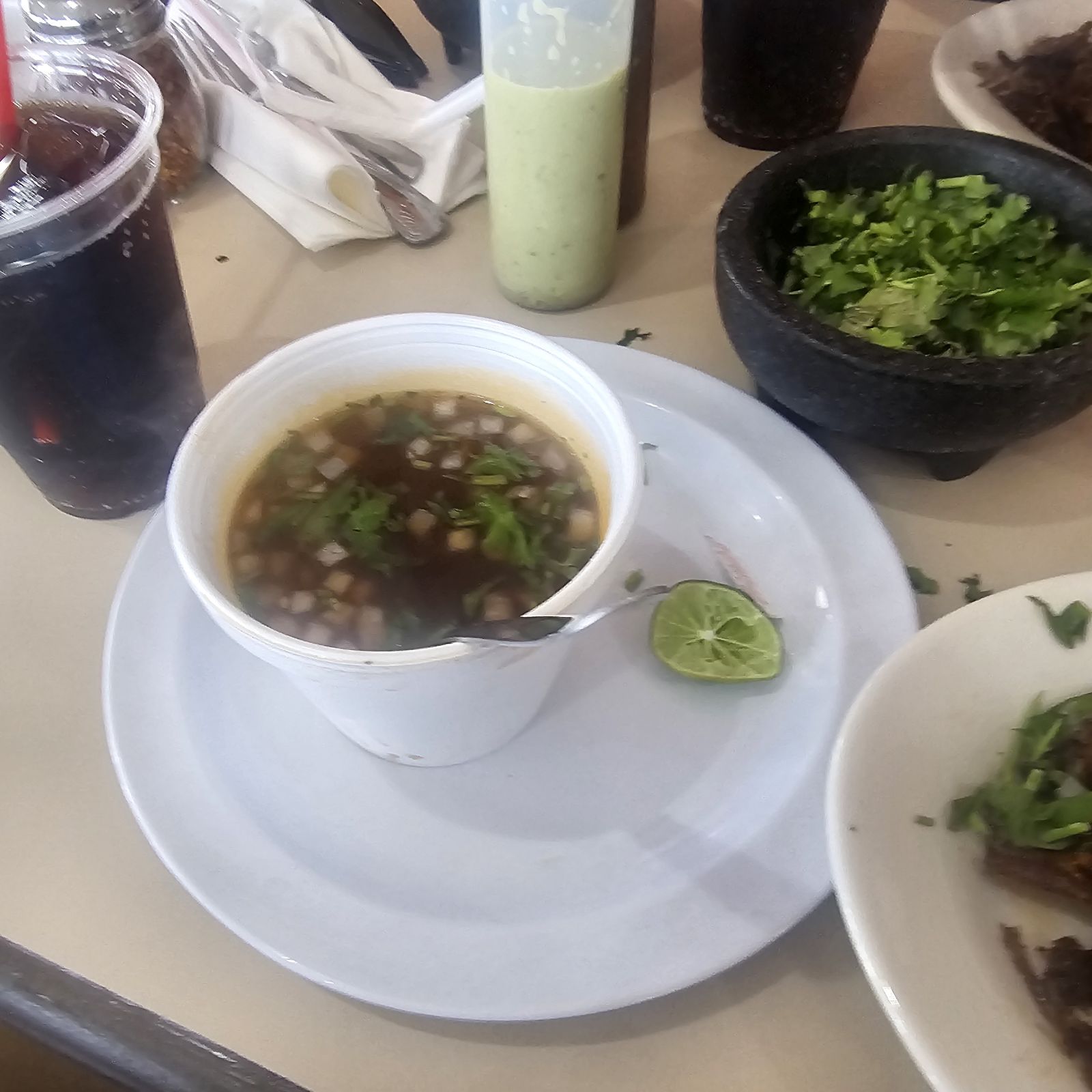 Read moreWent Memorial Day around 2pm. No lines or wait, but parking was full, so not sure where people park when this place is packed. Thankfully, someone was leaving when we pulled in, so just a short wait. We had planned to order some birria and menudo to go and eat when we got home from our trip, but it smelled so good inside, we dieciséis to try a few items before we hit the road.