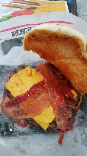 Cashier was great very friendly I had a western bacon cheeseburger was hot and the order was correct I sat down to have my lunch there.
