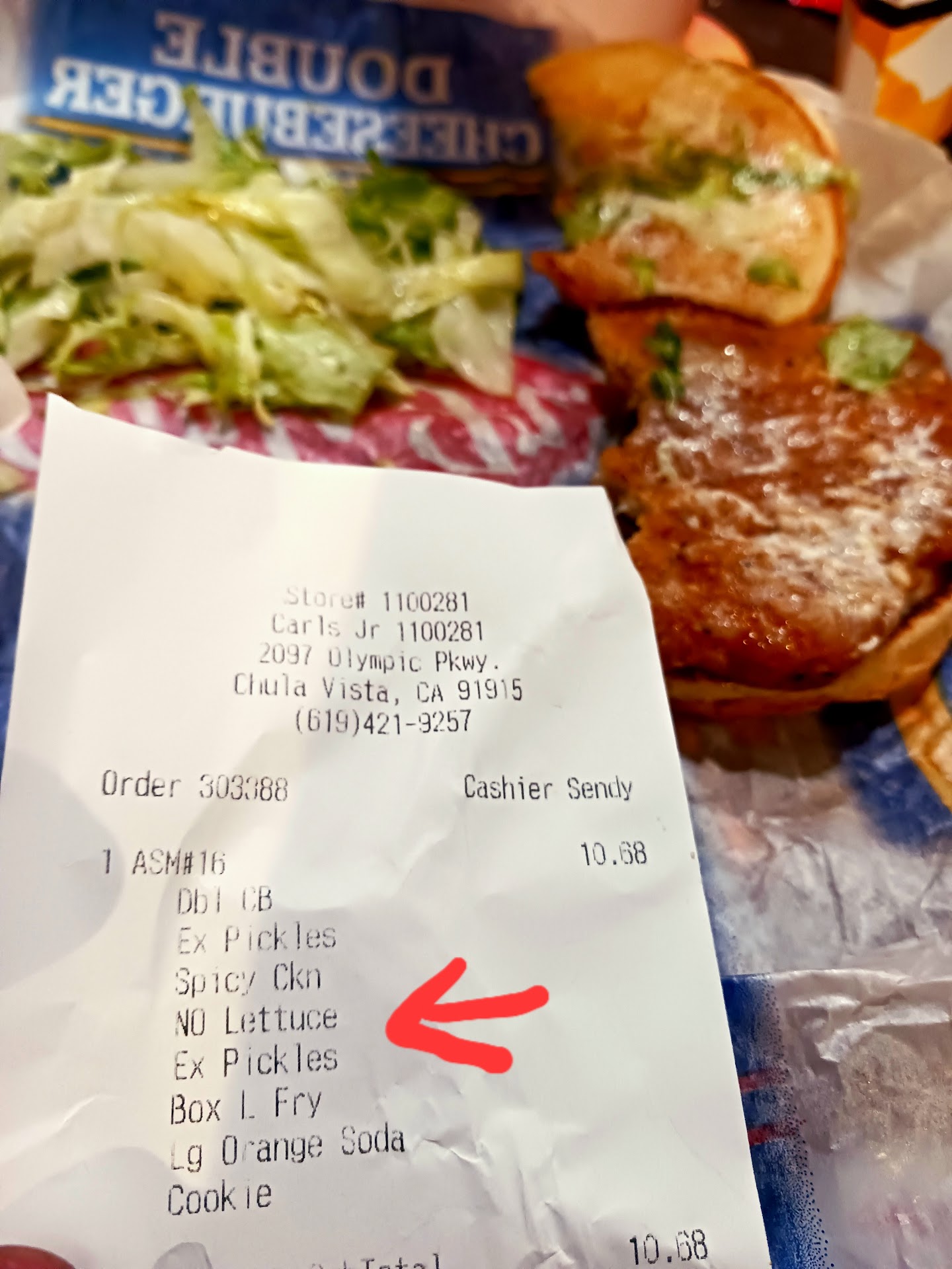 Read moreCame here the morning of 10/26/2020 and ordered a breakfast burrito (bacon eggs and cheese). I paid and was given my receipt (at the same time the customer service rep closed the drive thru window) after noticing that I was charged for a steak and egg burrito, I attempted to get her attention to correct my order but the windows were shut. She gave me my food and I told her I ordered bacon eggs and cheese and not steak and egg burrito. I gave the food back and parked infront, she came back with the food but without my change. Charged me 5.99 for steak burrito and told me price difference was only 50 cents difference. The correct business principle would to have given me my change without me even asking. I'll freely let Carl's Jr. steal $1.25 (difference between bacon and steak) to let other customers know how Carl jrs operate. I left without my change because she had a bad attitude. ...
