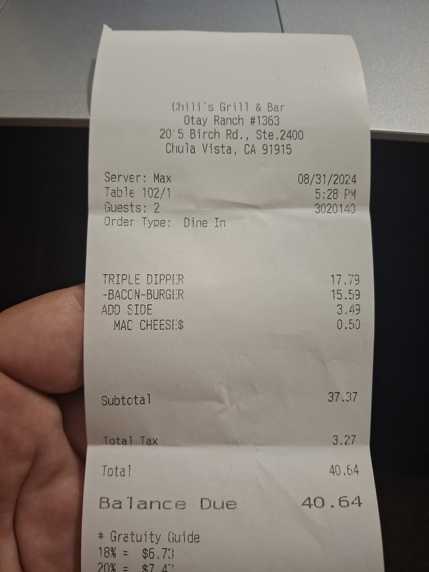 Food was okay, it's Chili's, I don't expect food to blow my mind.
