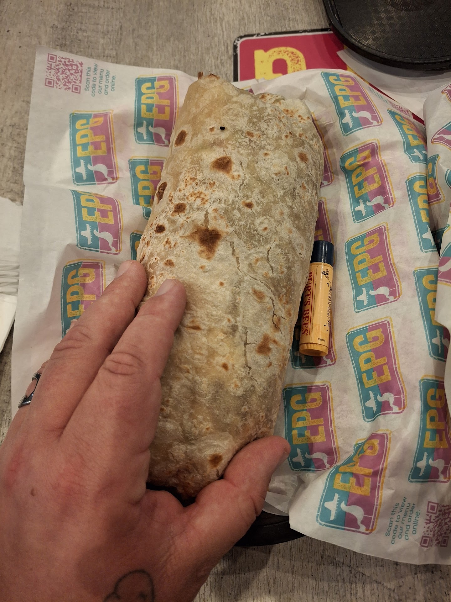 This is my first time here. Hubby said let's try it out. My son and I got the same thing. Yep you guessed it: FISH BURRITO!!! 🥰🥰 side of sour cream and guacamole to share. Yes the guacamole is REAL🥑, not emo or sour cream blend.