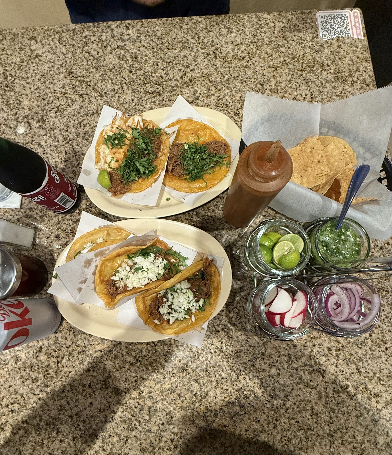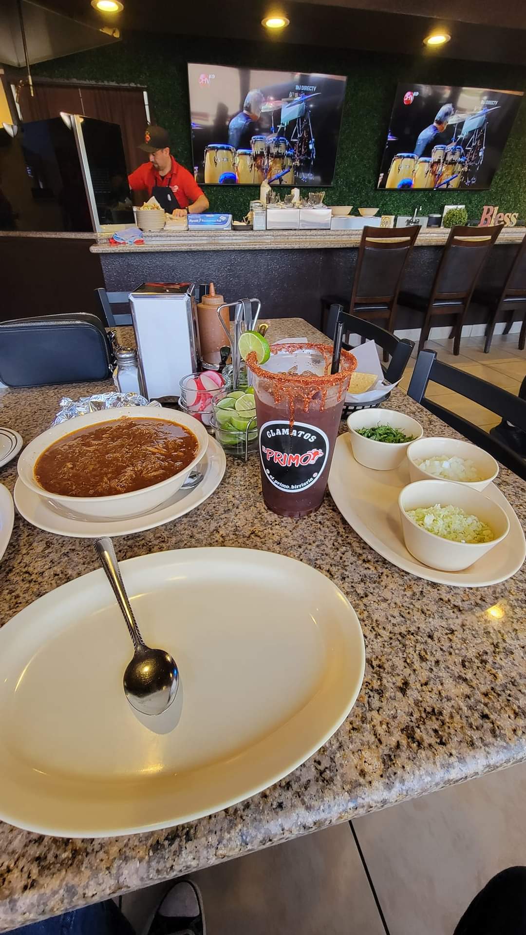 This place is a solid indoor birria joint in Chula Vista. I'm from Sydro so I'd only ever ordered Birrieria el Primo from the foodtruck next to Grocery Outlet, but I was with a friend in the area and we decided to try their in store location. When we walked in, there was waitresses and they sat us and took our orders. I just went for the classic tacos, meanwhile my friend opted for a regular taco and a quesataco. They brought us out chips and salsa to start munching while we waited for the food, and the sauces were very tasty and seemed fresh. The food came out shortly, although the tortilla wasn't very "dorada" despite us both asking for our tacos that way, but this birria never makes me sick "nunca cae pesada" and I like that it isn't as greasy as some others that I've had in SD. It's a solid place, and I love their use of repollo in their tacos, that's so Tijuana birrieria Si, La Libertad, if u know u know realness and it adds such a nice pop of color and complexity to the taco. For drinks, we didn't do too much and just stuck to some sodas but they do have cafe de olla which definitely warrants a try. The tacos weren't as hot as I would've loved them to be which was a bummer since they usually come out piping at the food trucks, but for being indoors and having ac, i can't complain too much. The inside is a bit weird, because they have scenery painted on the windows as they're blacked out on both sides, and the decor is flashy and intense, but it's a nice eating experience and I enjoyed having my meal indoors. Also thank god they accept apple pay, I saw so many reviews talking about them making you pay in cash, and honestly it's true there is an ATM inside the building, but we were able to use tap to pay with no problem and the bill wasn't ridiculous, but definitely not the cheapest birria place in SD. God knows if they made me pay in cash I'd be livid. But, OVERALL DAYGOEATS CERTIFIED✅✅ only because this is the mother store to the food truck and it's good, but ima still be hitting up the food...