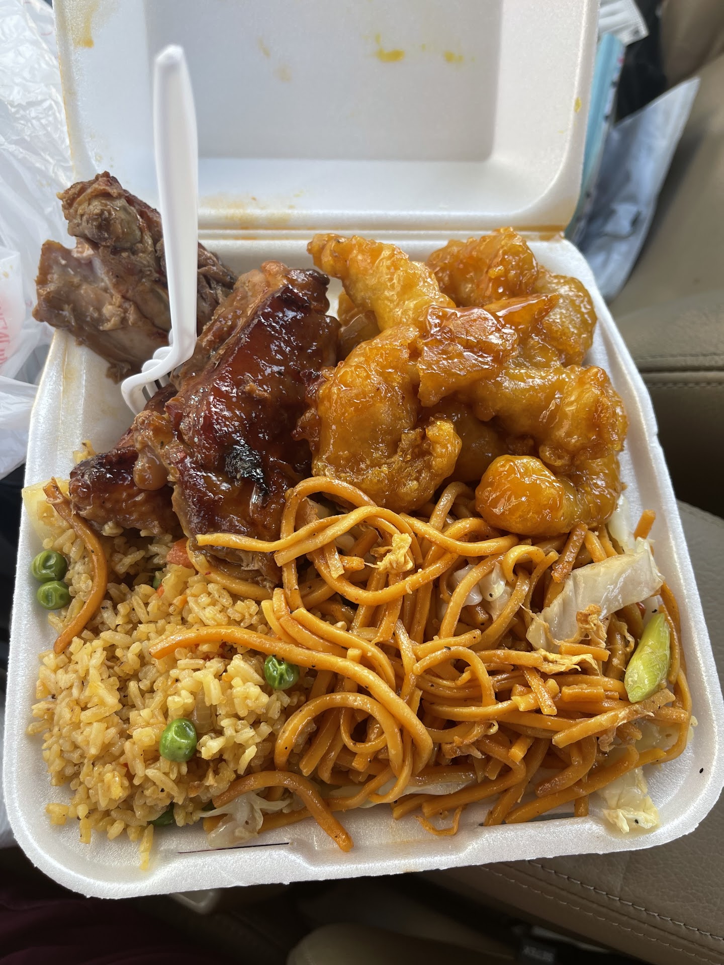 The food is pretty good I had orange chicken and this other chicken with the bone it was really good. They also had this rib but that’s a Dollar extra. I did not like that they do not accept credit card or Apple Pay however it is a small family owned business and it is understandable. I didn’t have cash so came up with $10 in change LOL. Food is pretty good....